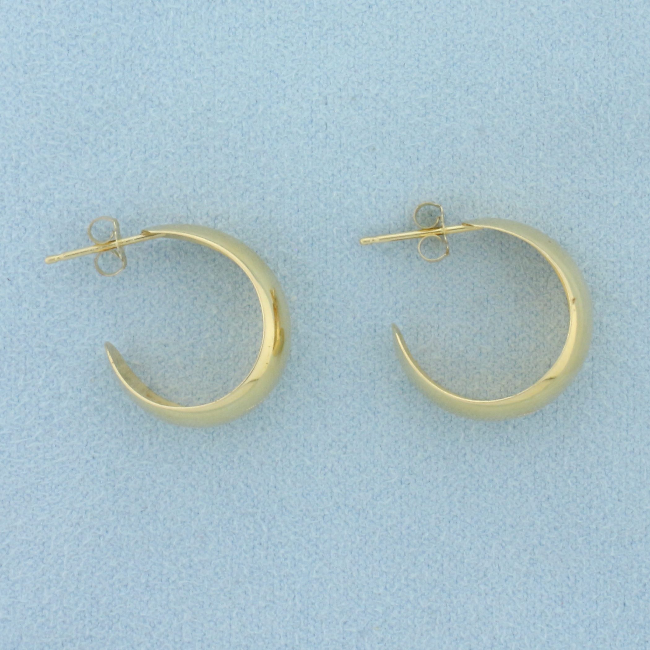 In 14k yellow gold. 5/8 inch diameter, 8mm wide at widest point. New 10k yellow gold friction backs. 2.3g.