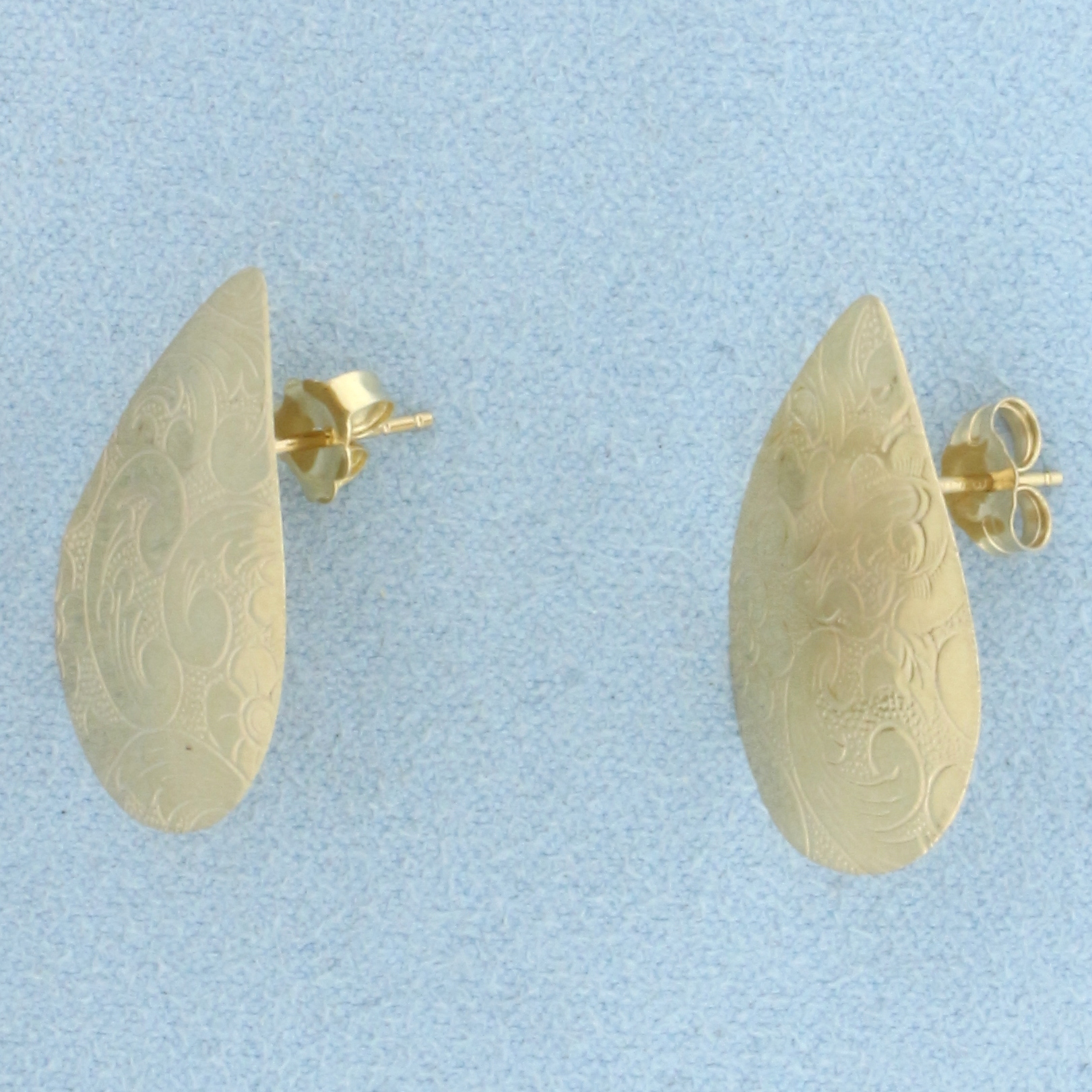 Etched Large Pear Shaped Earrings in 14k Yellow Gold