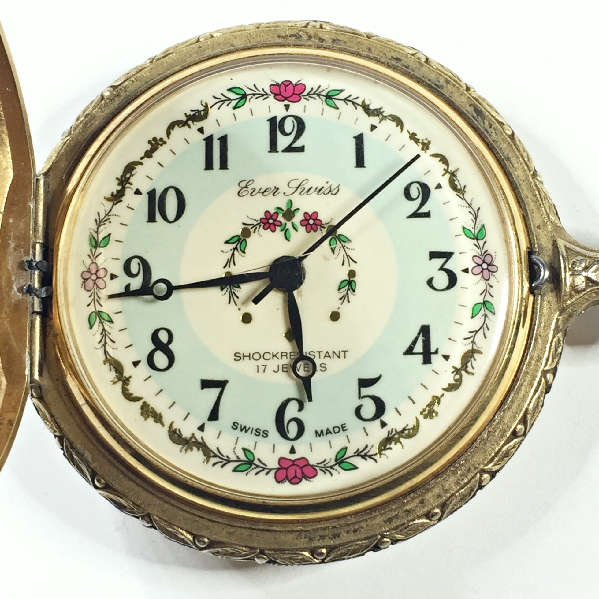 Ever Swiss Shock Resistant Duck Engraved Pocket Watch - 58 Grams Total Weight