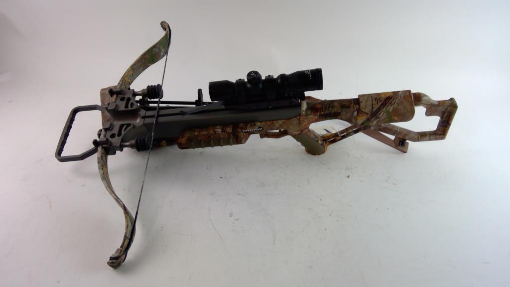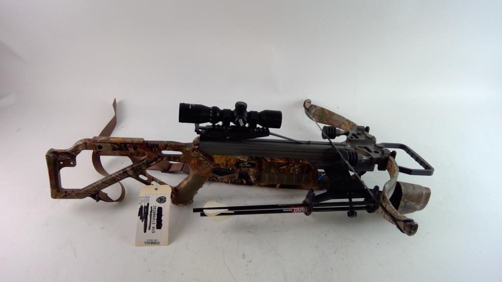 Get a great deal with this online auction presented by PropertyRoom.com on behalf of a law enforcement or public agency client. Model: Micro Color: Realtree camo Bow Length: 26" Draw Length: Unknown Draw Weight: Unknown Accessories: Arrows Cosmetic Condition: Good with scratches Shipment by PropertyRoom to any jurisdiction does not mean this item is legal in such jurisdiction. It is your responsibility to have knowledge of, obey, or comply with all applicable laws relating to this item.