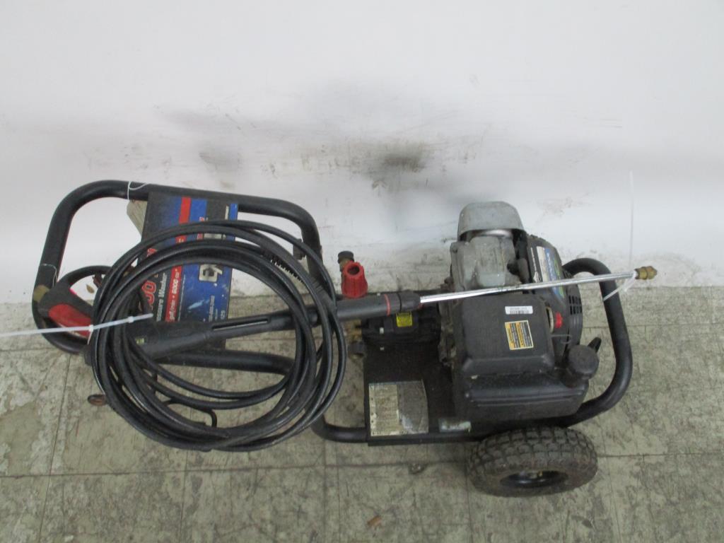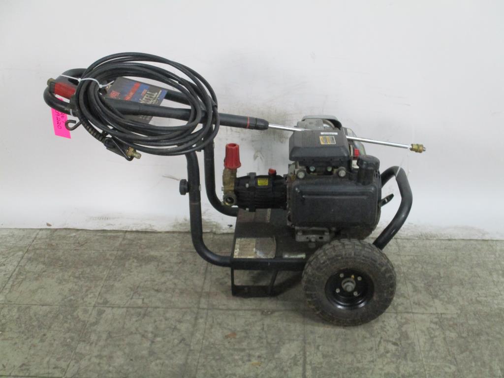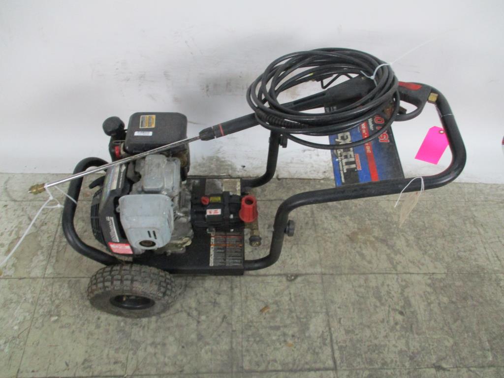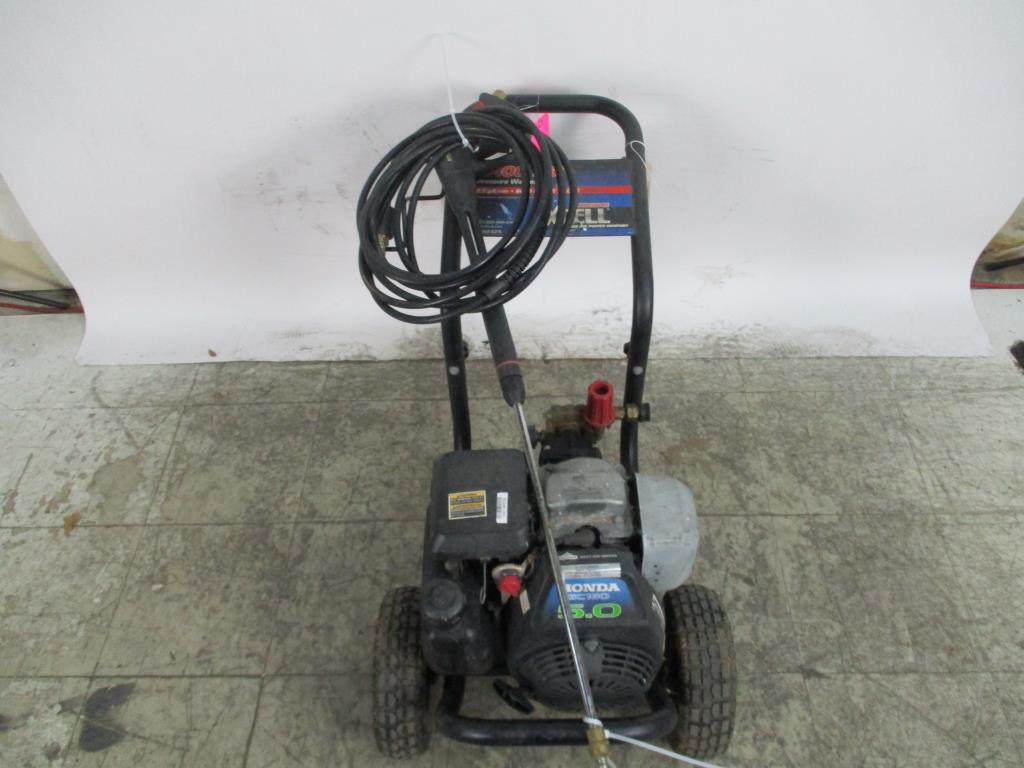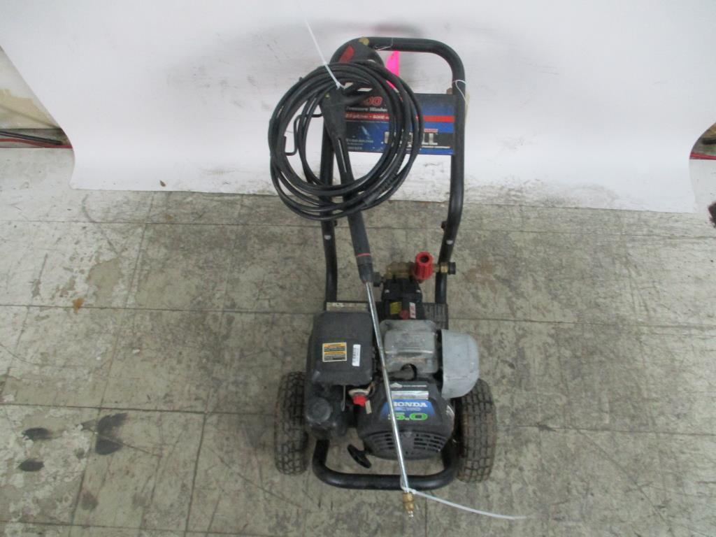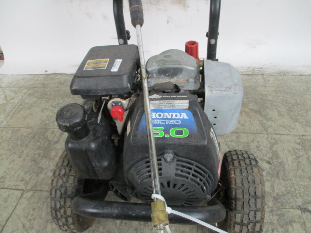 - gas powered, pull cord start, honda gc160 5.o engine, 2.5 gpm, 2400psi, 6000cu, handle with dual wheels
