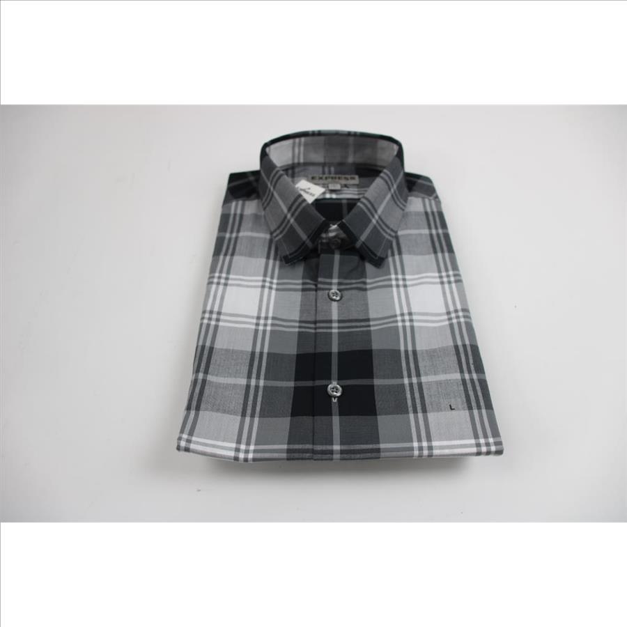 Express V-Neck Shirts, And Fitted Plaid Grey/White/Black Button-Up, Large, 3 Pieces