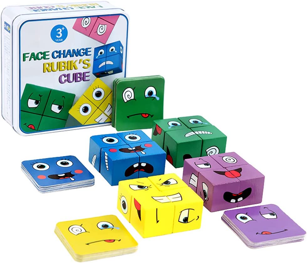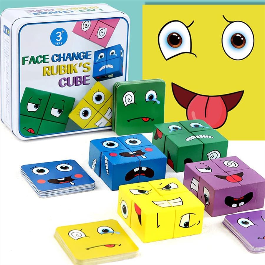 Face Change Cube Game Wooden Expressions Matching Block Puzzles