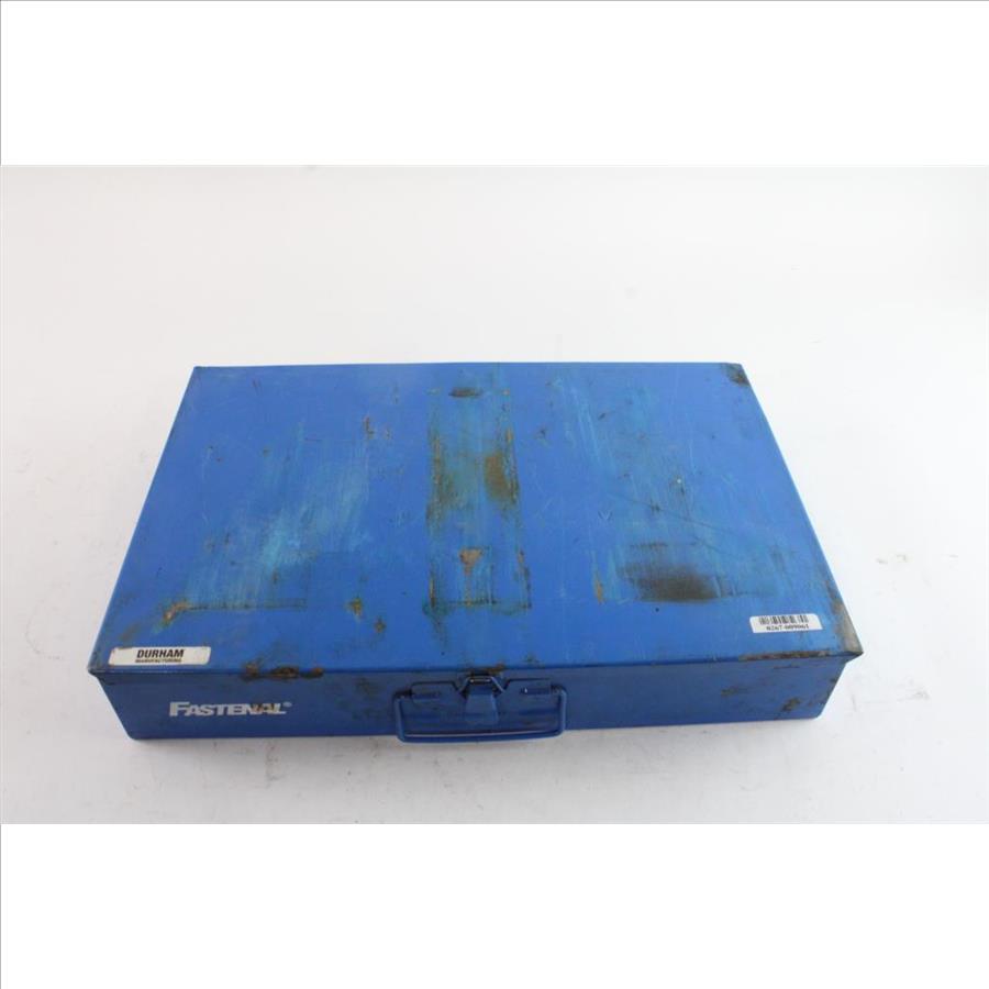 Fastenal Metal Box With Assorted Hardware & Equipment, 10+ Pieces