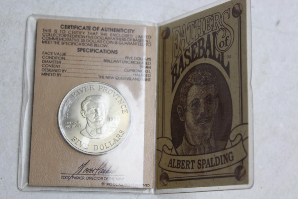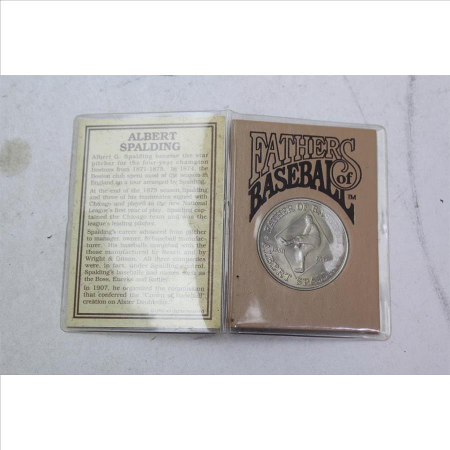 Get a great deal with this online auction for a collectible coin presented by Property Room on behalf of a law enforcement or public agency client. - Front side of coin is "Father of Baseball Albert Spalding, 1850-1915
