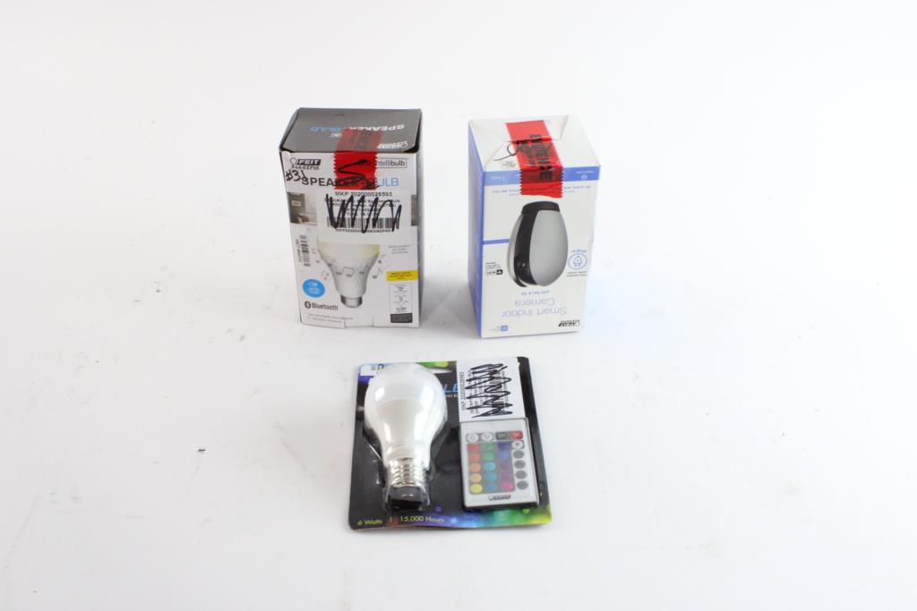 Feit Smart Indoor Camera, LED Party Bulb & More, 3 Pieces