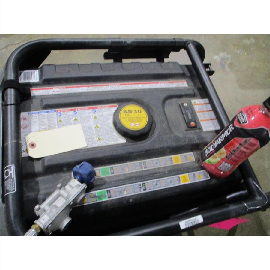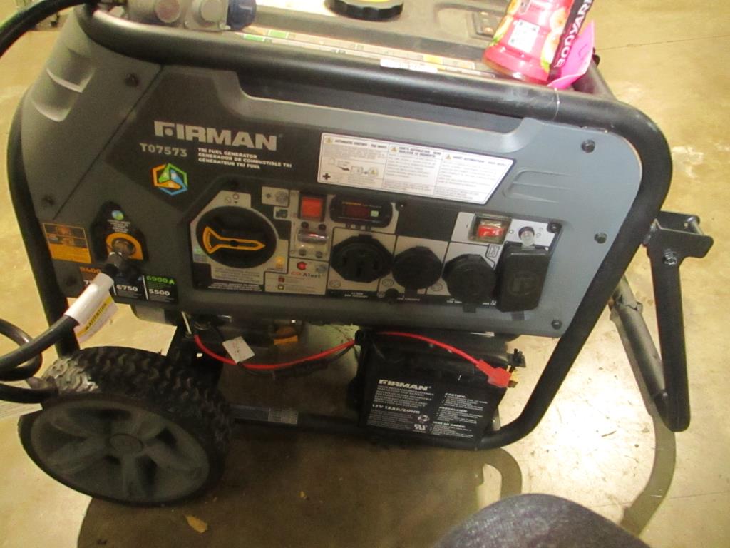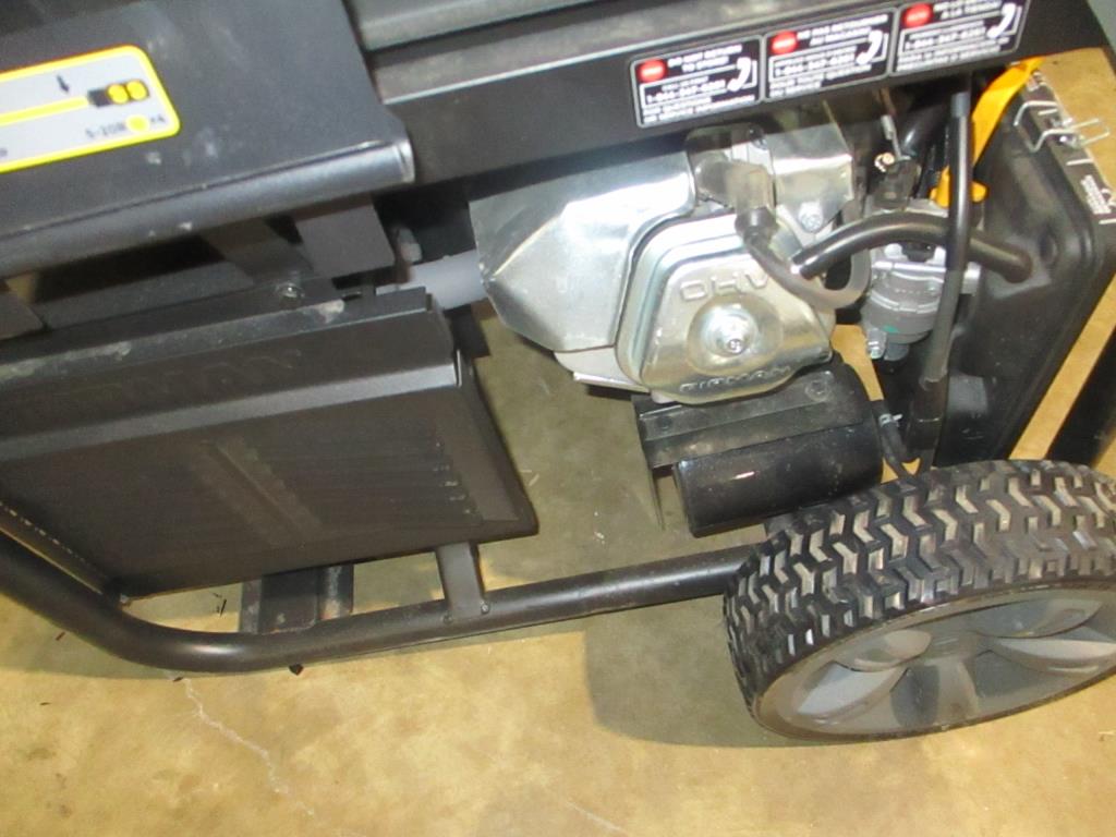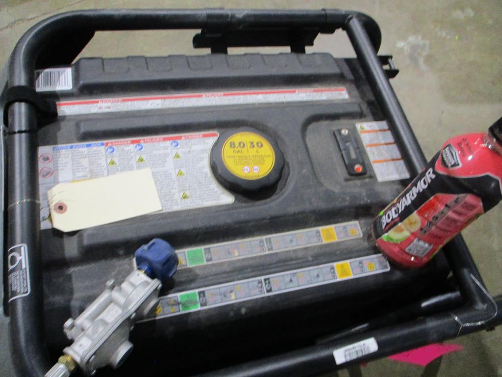 - Item info: gas powered, pull cord start, tri fuel, propane powered, fuel selector, on/off switch, digital display, dual breakers, 4 120/240v plugs, kill switch, 12v battery.