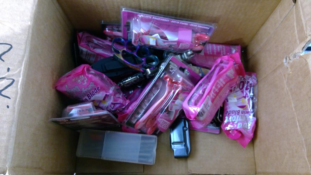 Get a great deal with this online auction presented by PropertyRoom.com on behalf of a law enforcement or public agency client. - First Aid Kit, Health Smart Eclipse womens dispoable razors, Health Plus xtra comfort disposable razors, Brass knuckles, knives,
