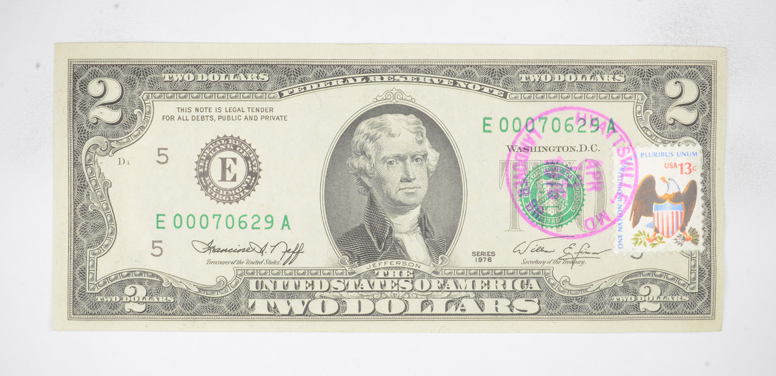 First Day Issue 1976 $2.00 Federal Reserve Note - Stamped!