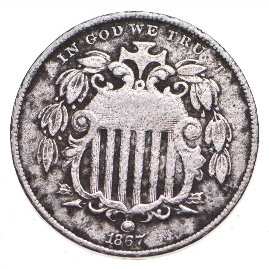 First US Nickel - 1867 - Shield Nickel - US Type Coin - Over 100 Years Old!