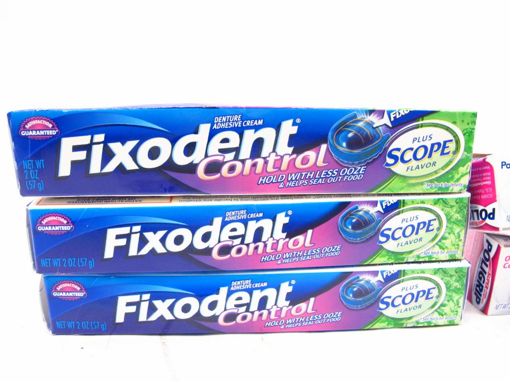 Get a great deal with this online auction for denture cream and tissues presented by Property Room on behalf of a law enforcement or public agency client. - Fixodent Control Denture Adhesive Cream, 2Oz., 3 Pieces