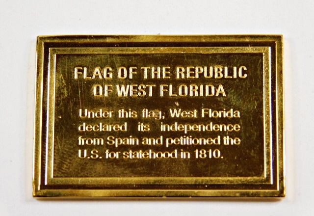 Flag of the Republic of West Florida Commemorative 1.158oz 24K Gold Electroplated Proof Bar*.500 Silver
