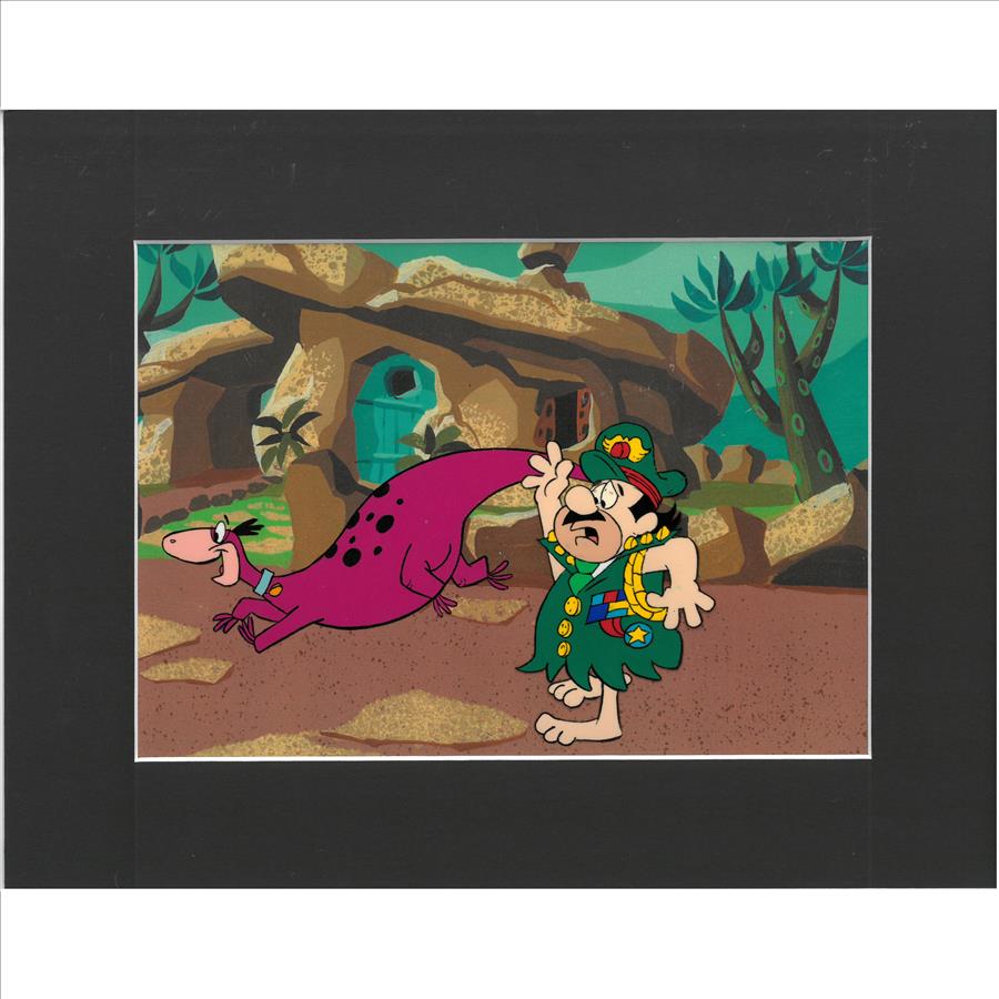 An original production multi-cel set-up.  These were used in the Hanna-Barbera TV Commercials "Flintstones Fruity Pebbles" which aired in the 1980's. It was produced by Playhouse Pictures Hollywood, created by, cartoonist and animator Scott Shaw. Playhouse Pictures, founded in the 1950's produced many well-known animation commercials, promotions and TV Openings, such as Hee-Haw, Rice Krispies, and Playboy.  Includes COA. Presented Matted with - 11x14