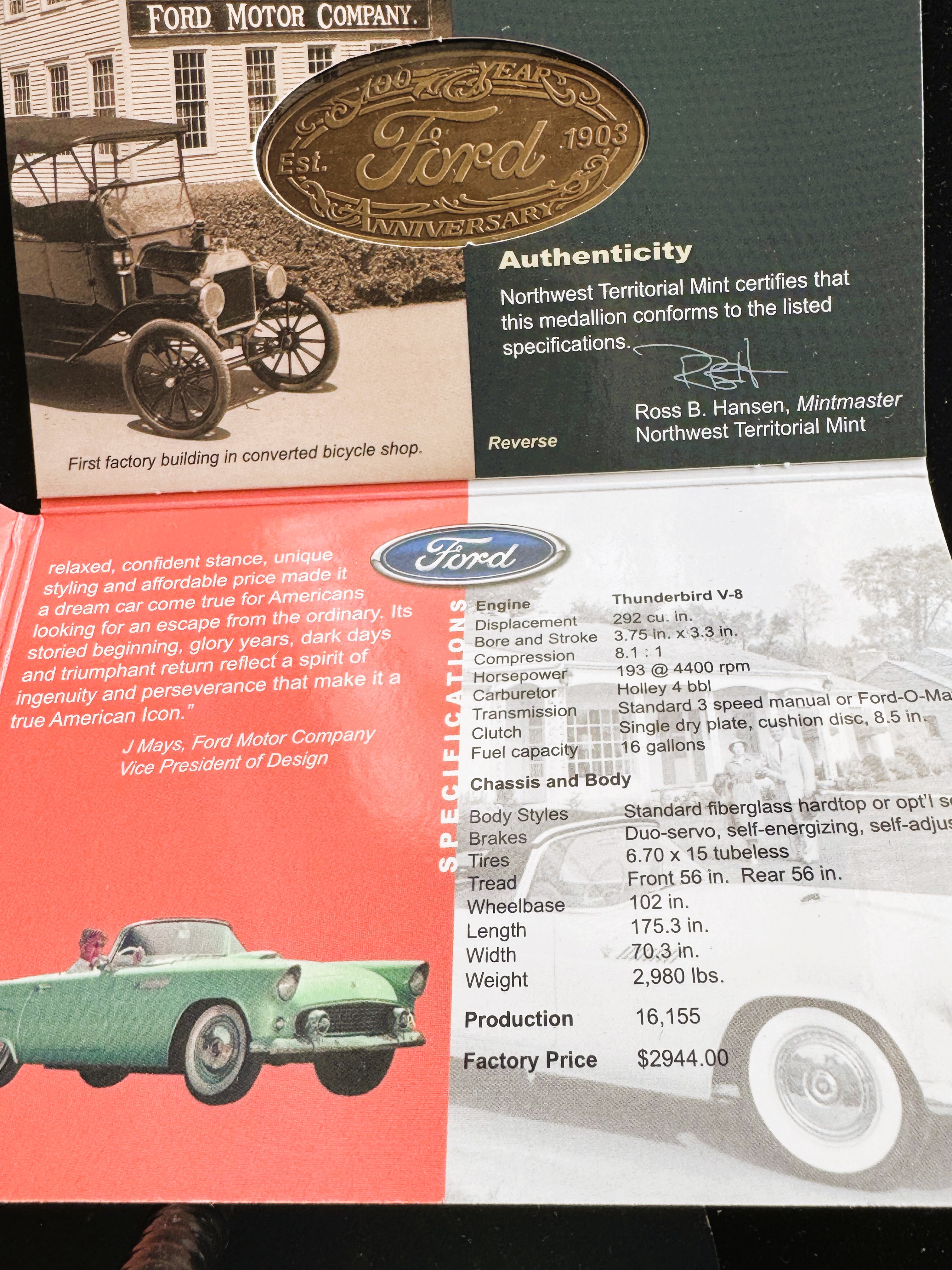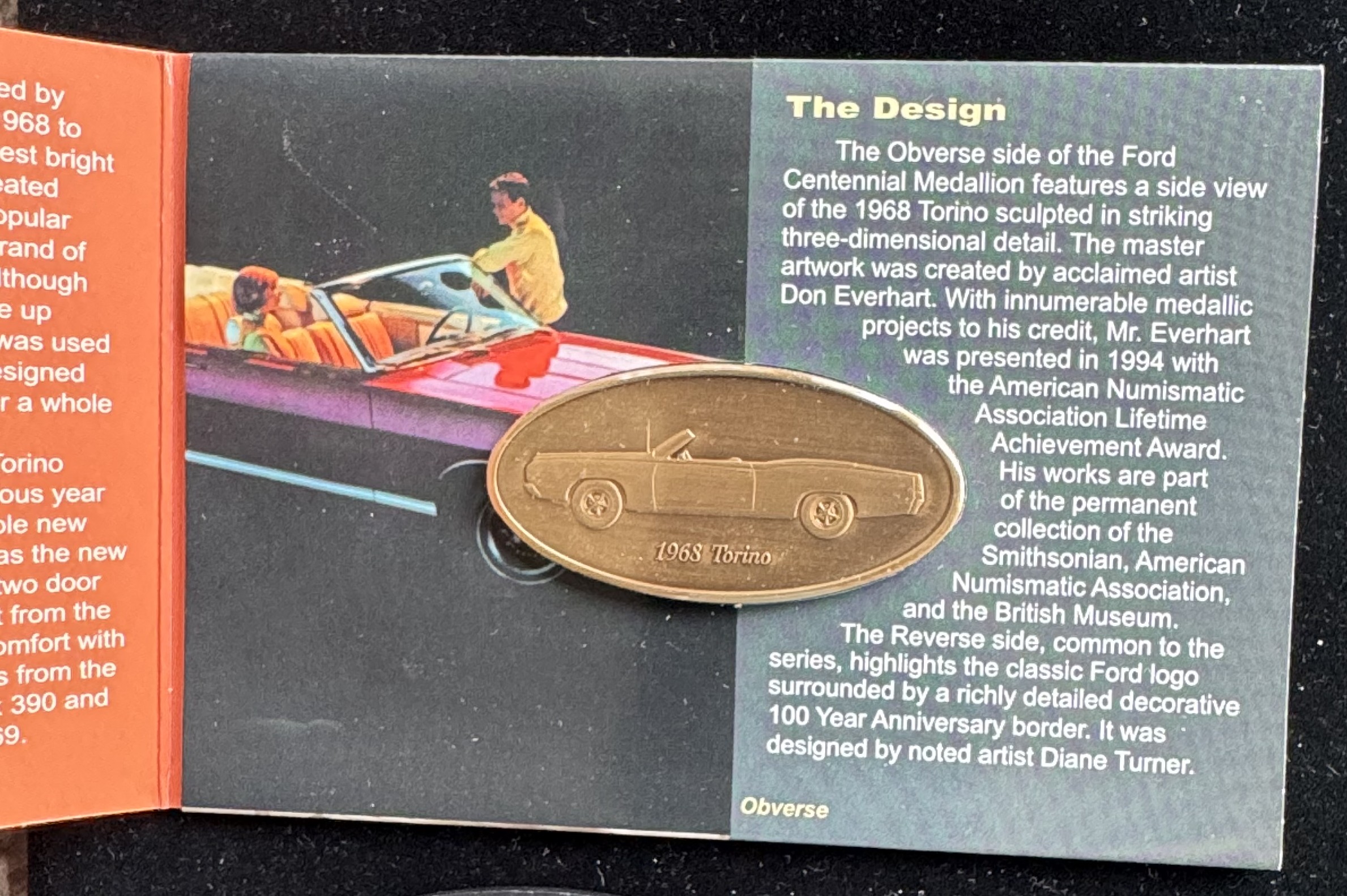 FORD 100 YEARS CAR ANNIVERSARY, (4) MEDALLIONS, 1949, 1955, 1968, 2003, IN (4) ORIGINAL PKGS, LIKE NEW