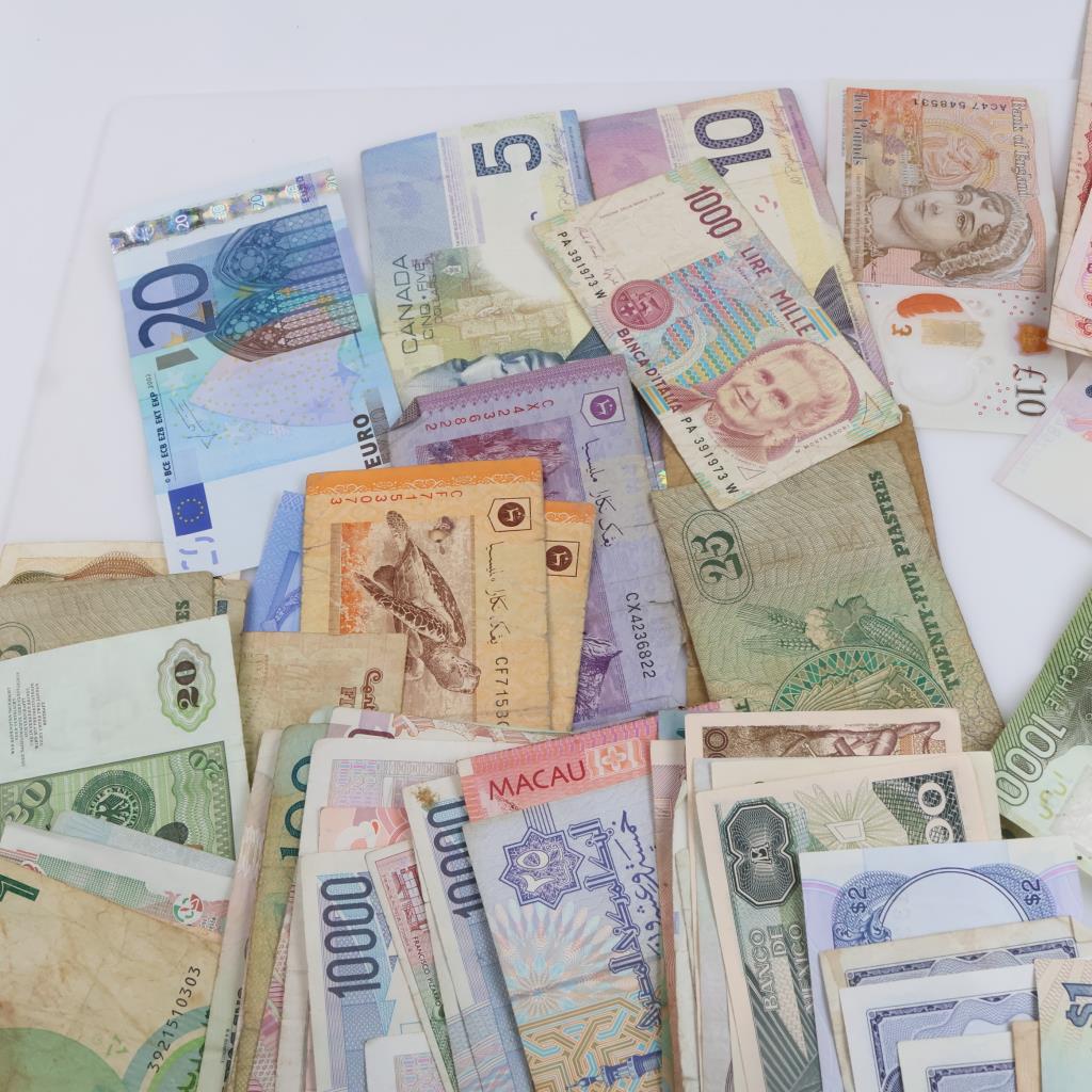Foreign Currency, 70+ Pieces, includes Euros and Canadian Dollars