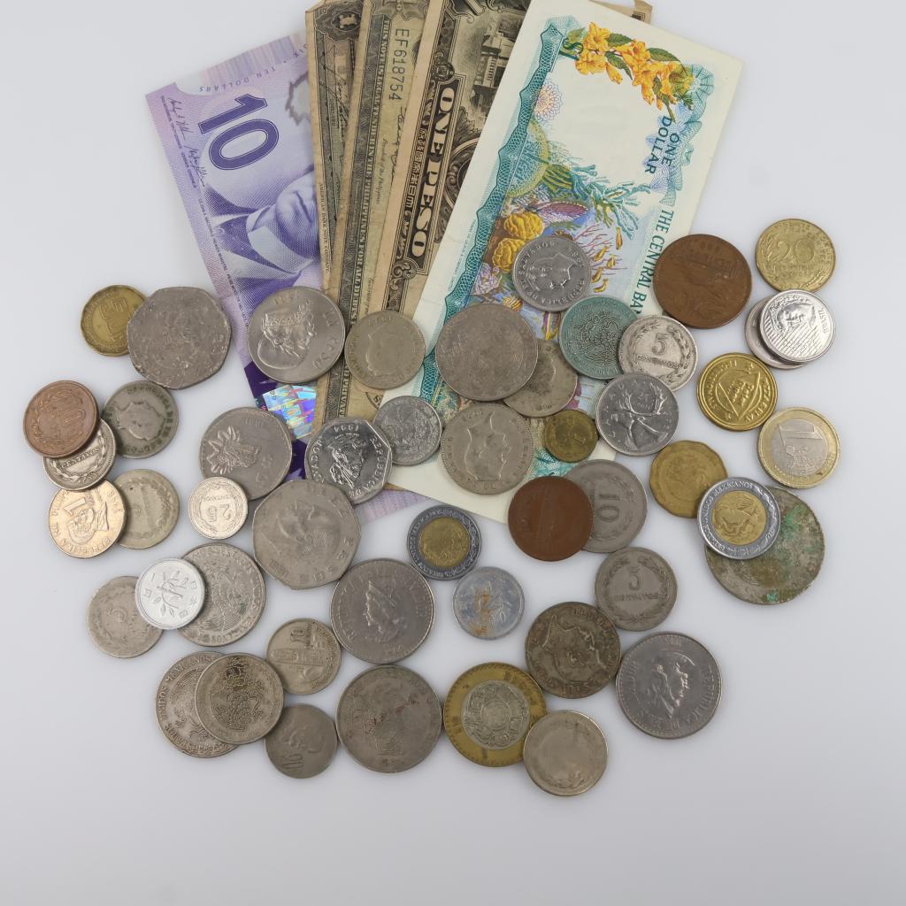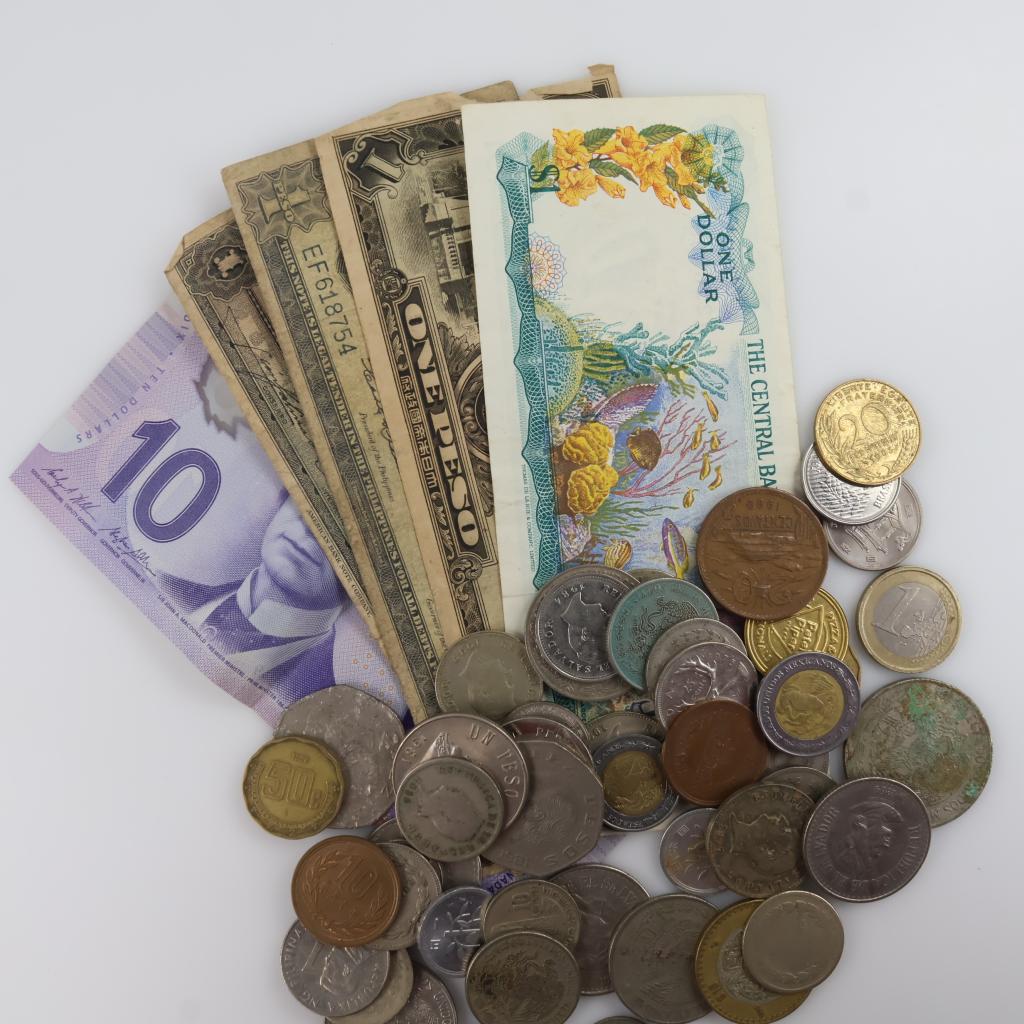 Foreign Currency And Tokens; 50+ Pieces