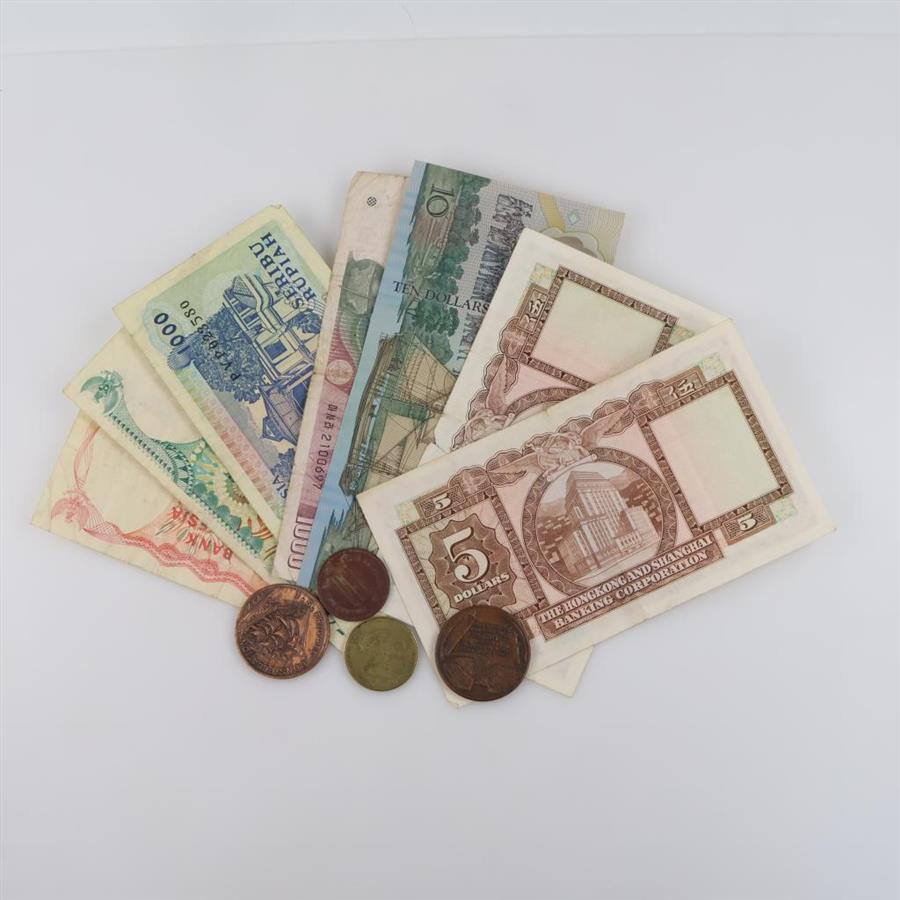 Foreign Currency With Tokens, 7 Pieces