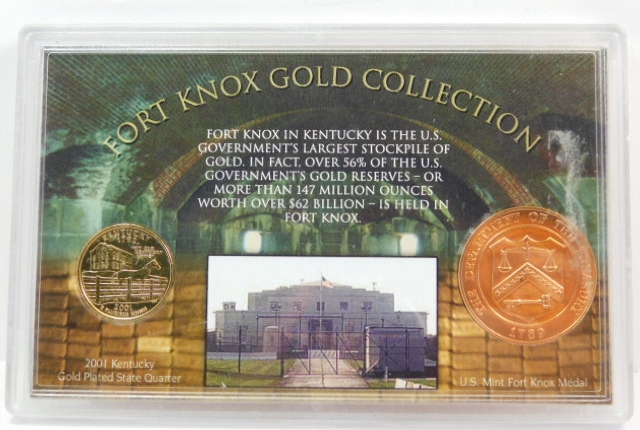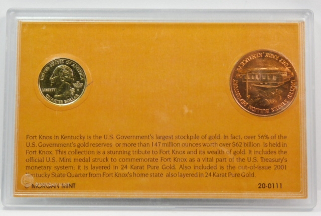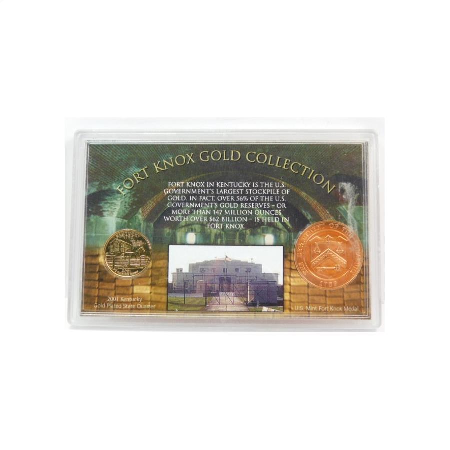 Fort Knox Gold Collection-2001-D Gold Layered Kentucky Quarter & US Mint Fort Knox Medal (Lovely Toning) In Custom Hard Presentation Case!