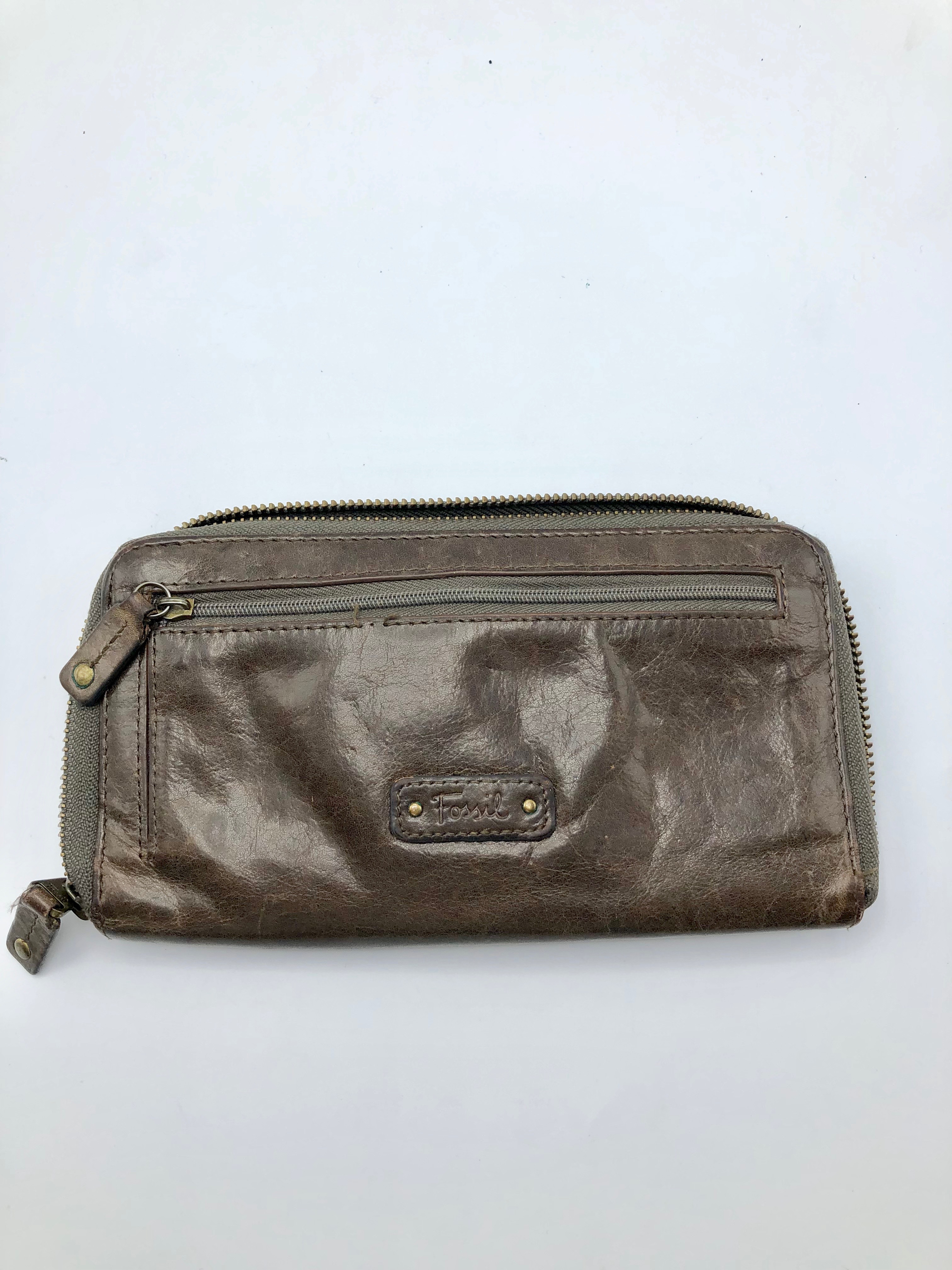 Fossil Brown Leather Wallet with Zipper Compartment