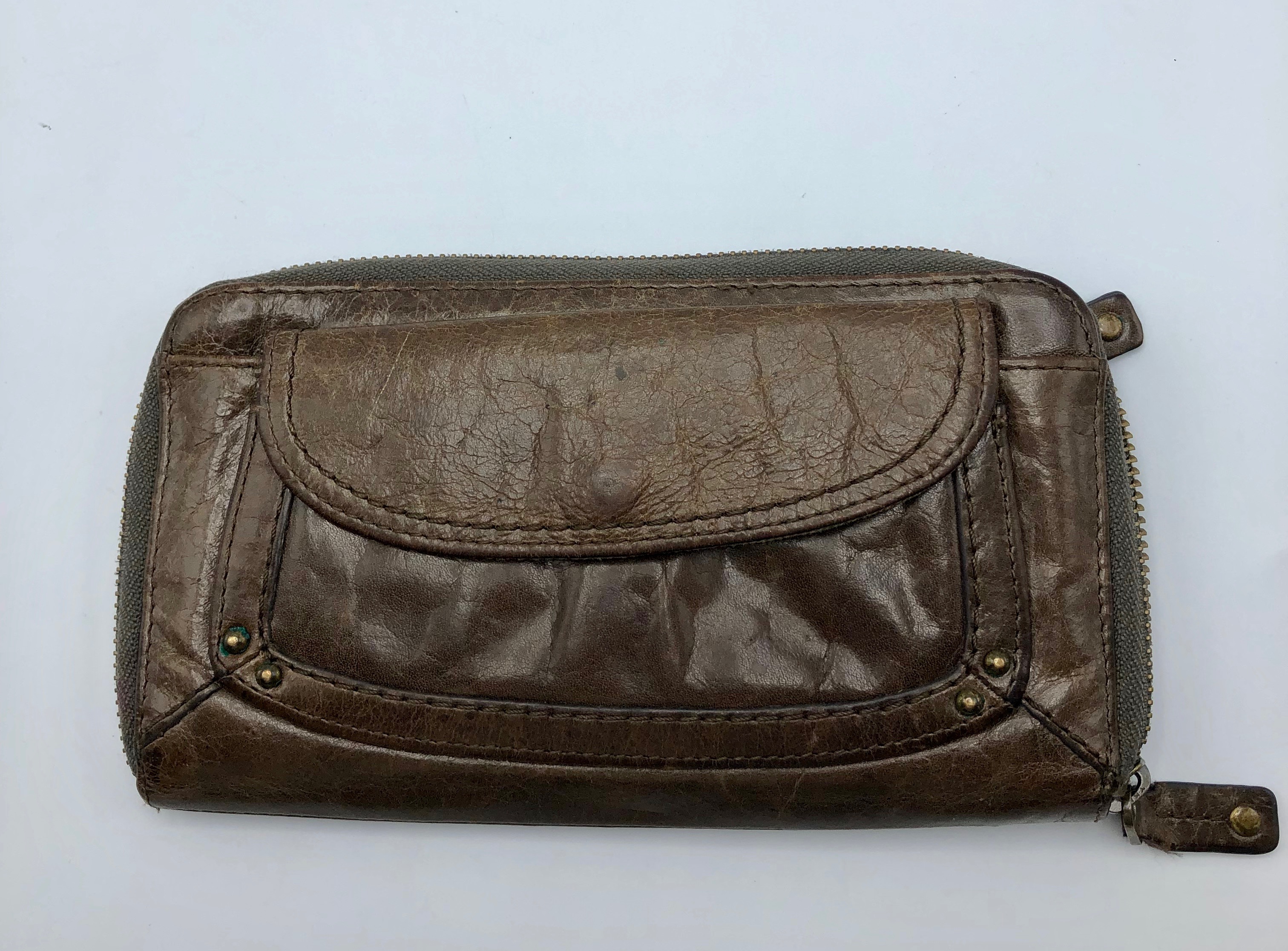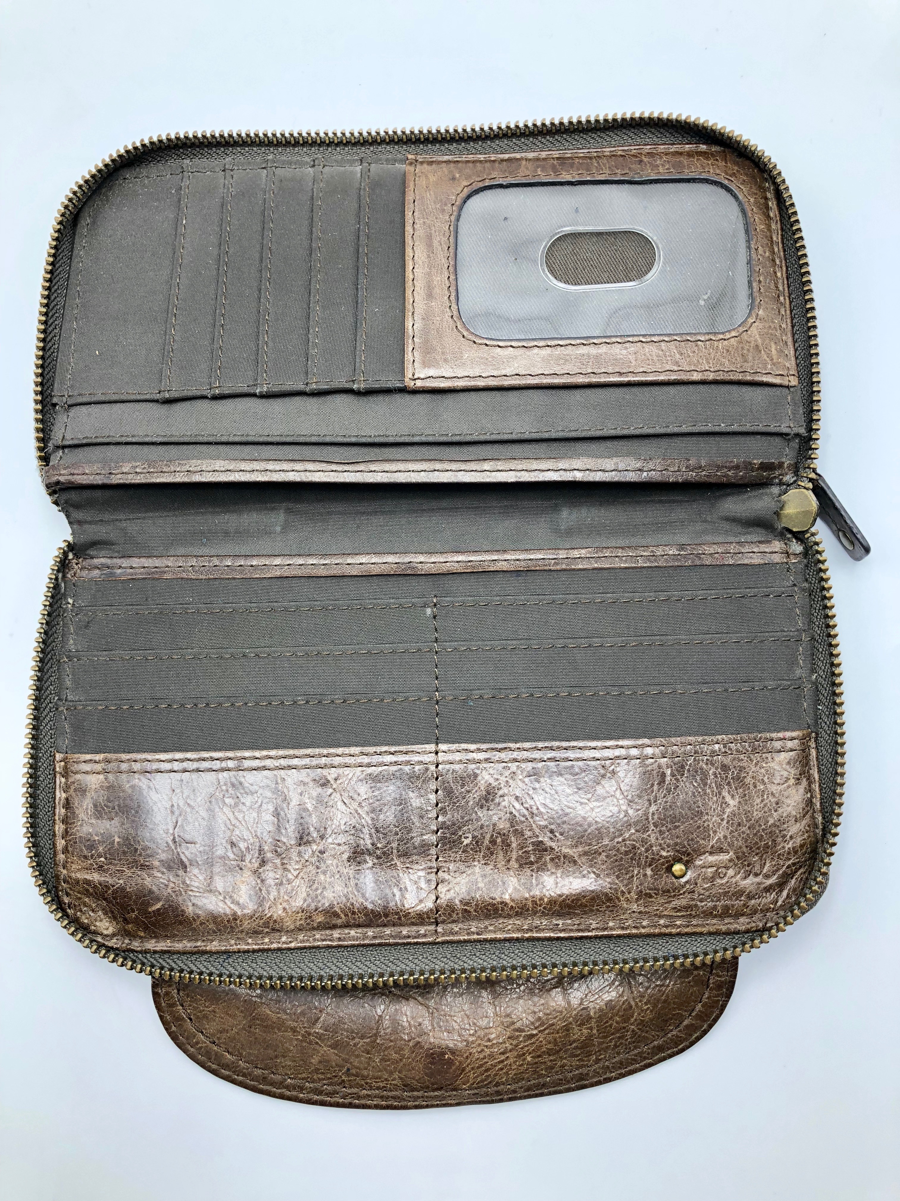 • Item #: 5057 oss Fossil Brown Leather Wallet with Zipper Compartment #4