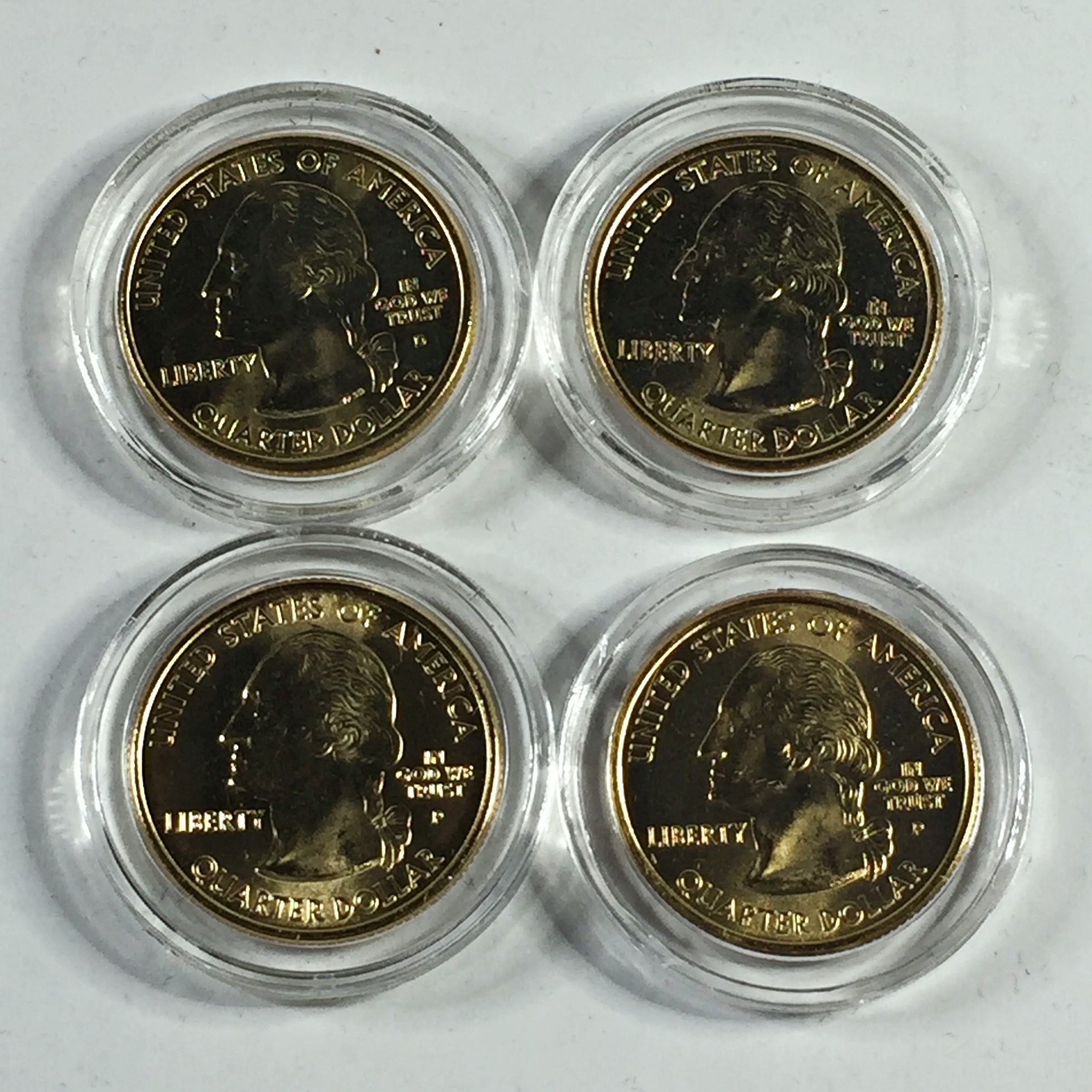 Four 24K Gold Layered 2003 Commemorative State Quarters*Missouri, Arkansas, Alabama and Maine