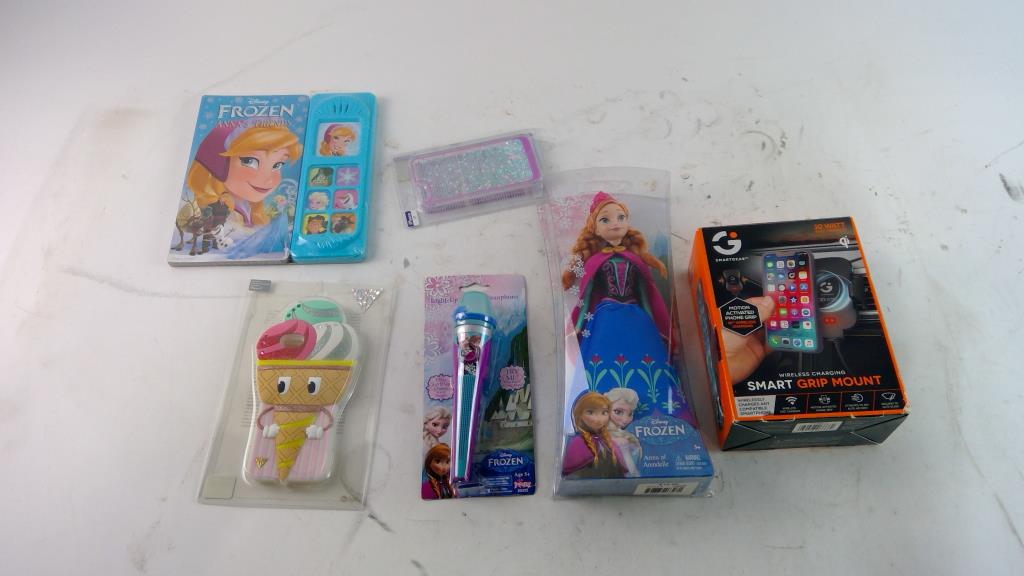 Get a great deal with this online auction presented by PropertyRoom.com on behalf of a law enforcement or public agency client. - Frozen Anna Doll, Frozen Light Up Microphone, Frozen Play a sound Book, Smart grip phone mount, and more