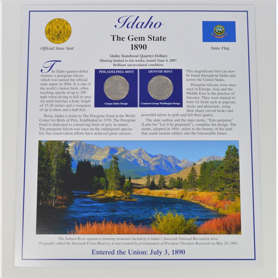 Full Color 2 Coin Ch BU Idaho State Quarter Beautifully Displayed Coin Set
