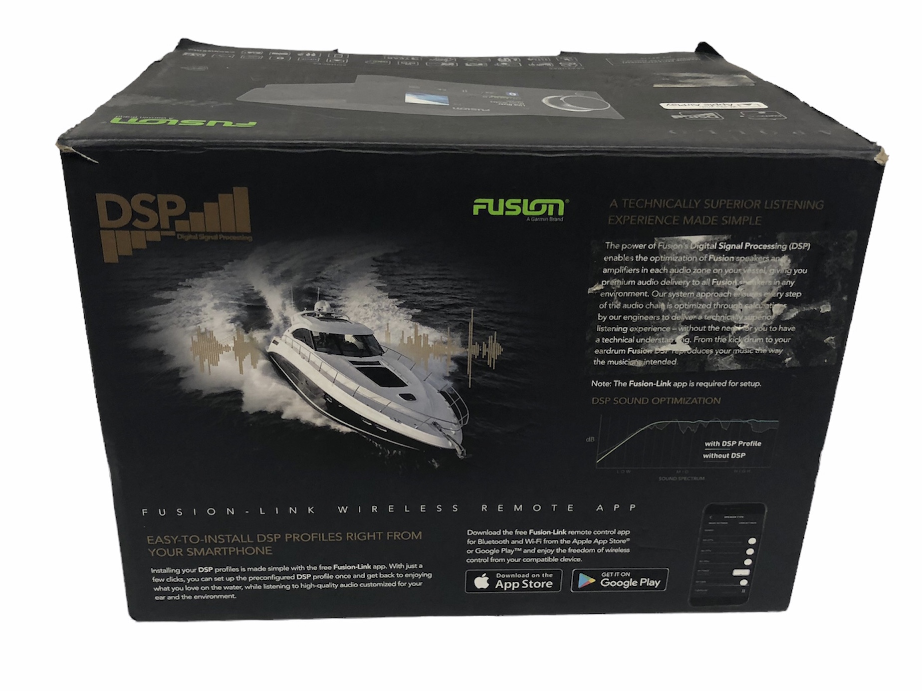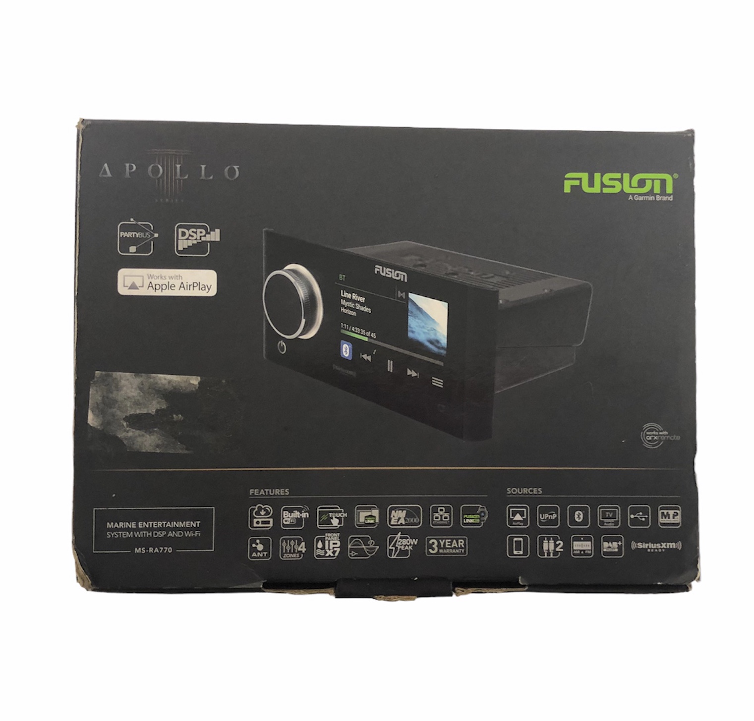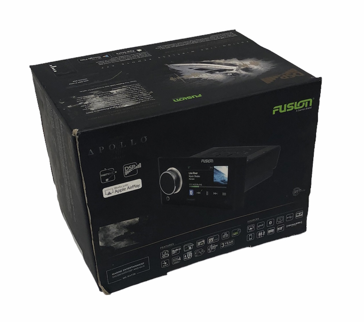 The award-winning Fusion Apollo RA770 is the world's first touchscreen marine stereo with built-in Wi-Fi and Apple AirPlay 2 capabilities – redefining audio excellence with revolutionary technology and innovative design. Featuring built-in Digital Signal Processing technology from Fusion, enjoy superior sound quality in every listening environment with custom audio profiles.