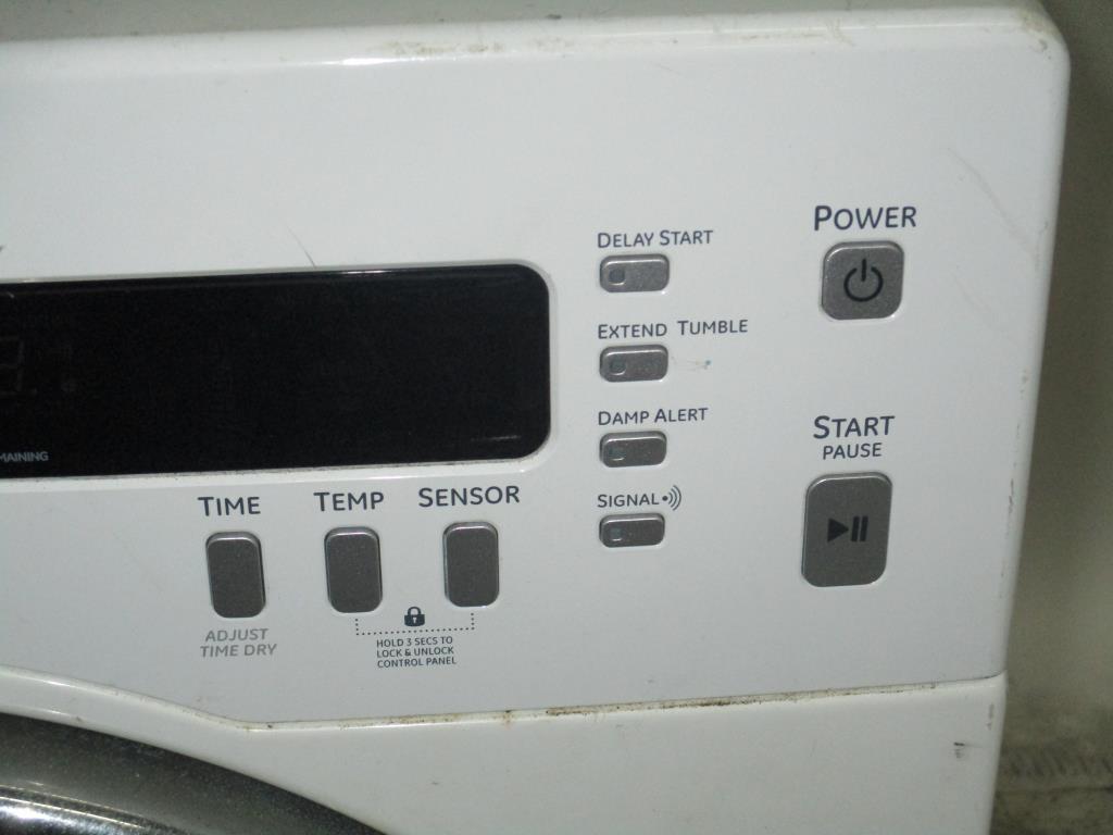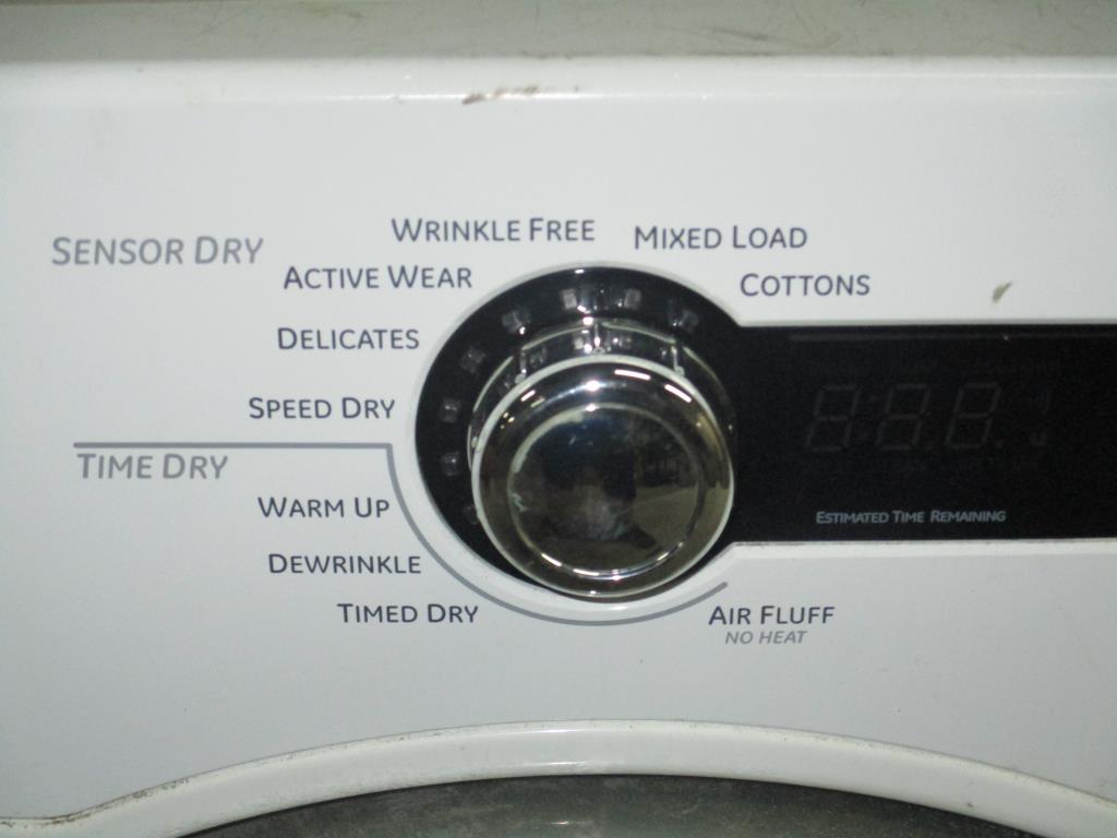 - Electric w/ cord, sensor dry,speed dry, delicates, active wear, wrinkle free, mixed loads, cottons, time dry, warm, dewrinkle, timed dry, air fluff, vent in door, power, start/pause, delay start, extended tumble, damp alert, signal, time, temp, sensor buttons.