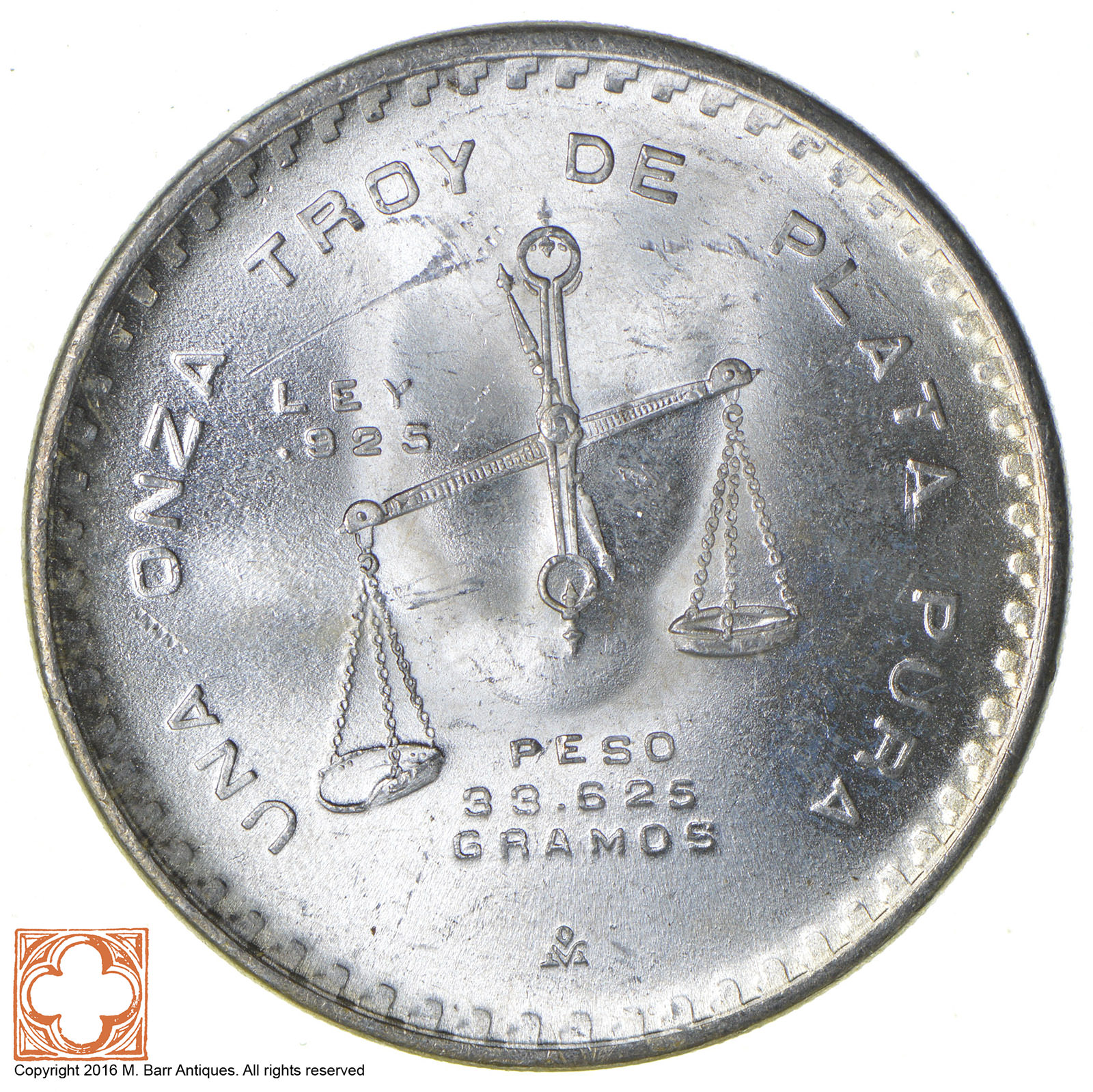 GEM BU - 1 Troy Oz SIlver - Balance Scale Mexican - Rare Silver Coin