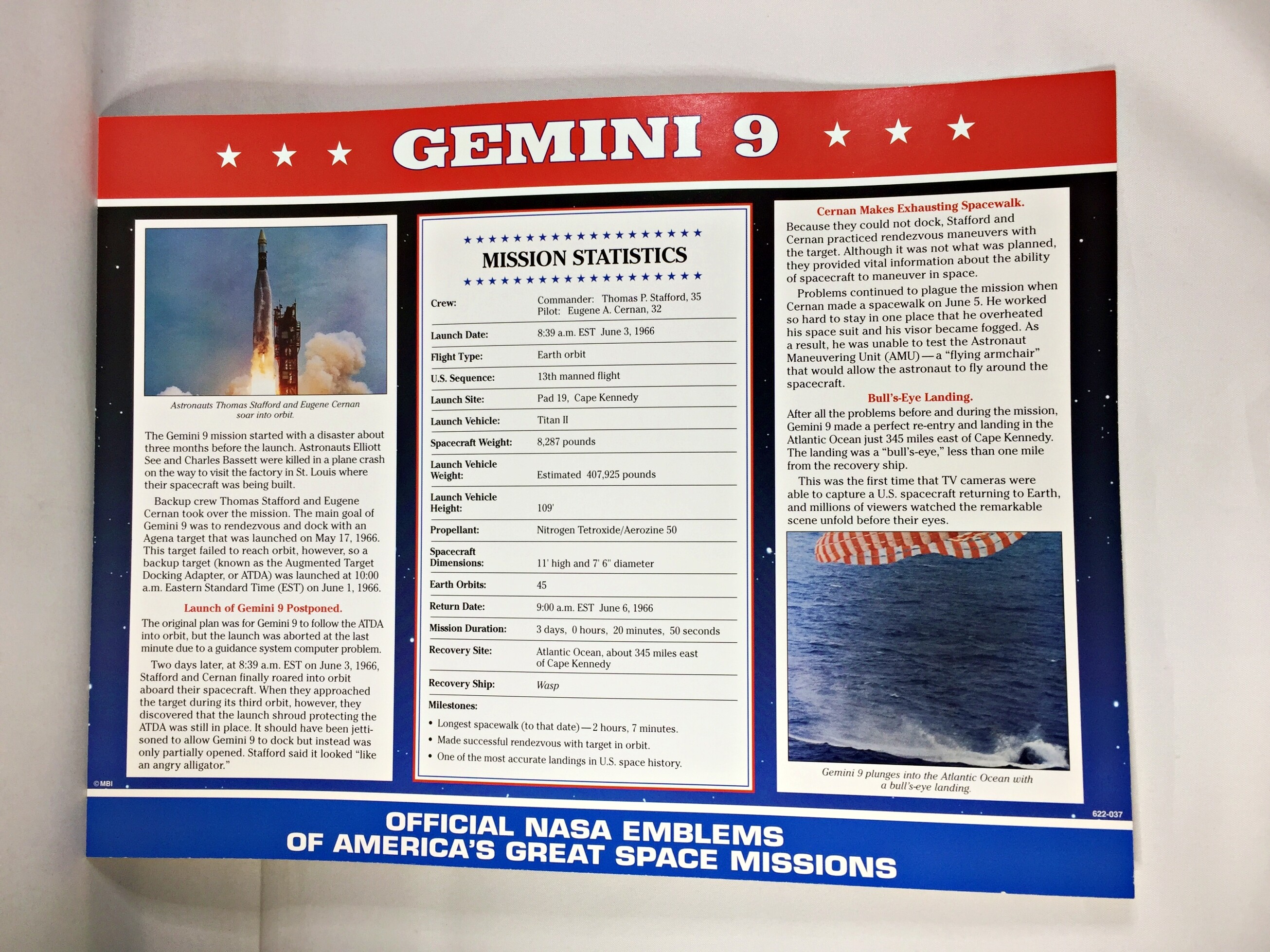 GEMINI 9 (Agena Target) NASA Space Mission Emblem Patch*Encased in 9" x 11" Historical Story Board