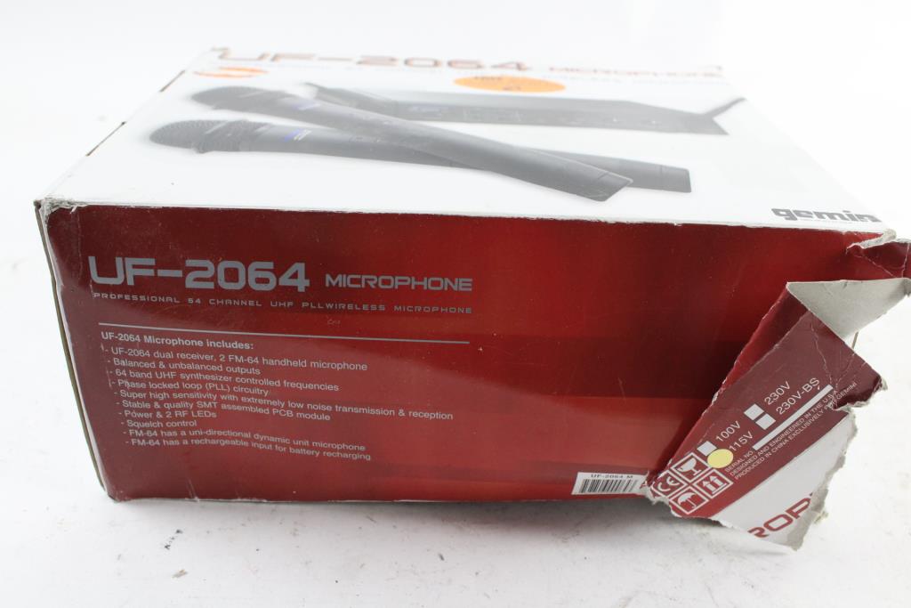 Get a great deal with this online auction for a microphone presented by Property Room on behalf of a law enforcement or public agency client. - Gemini UF-2064 professional 64-channel UHF PLL wireless microphone
