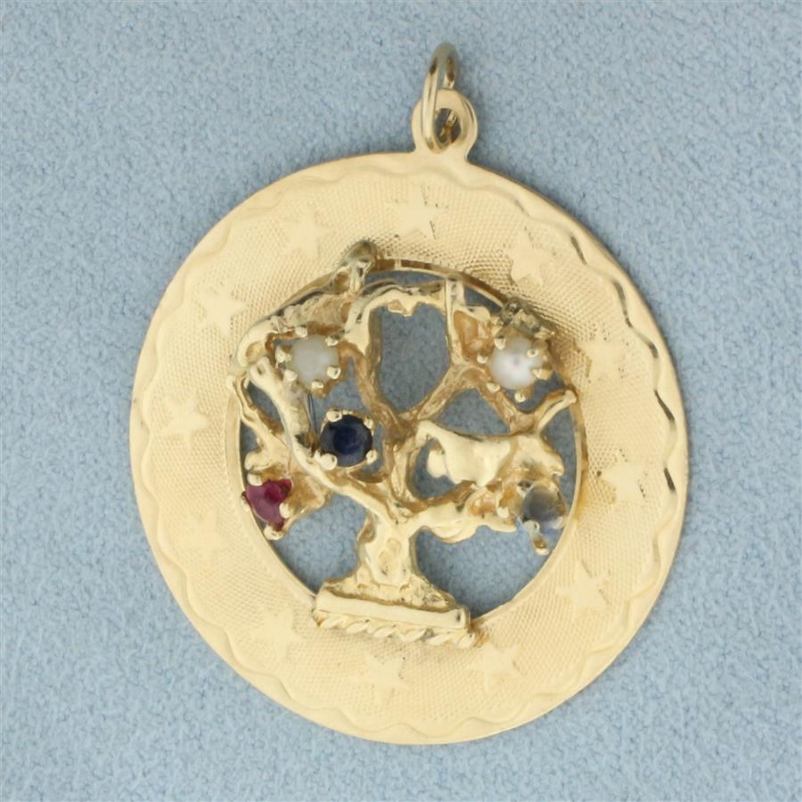 Gemstone Tree of Life Medallion Pendant or Charm in 14k Yellow Gold