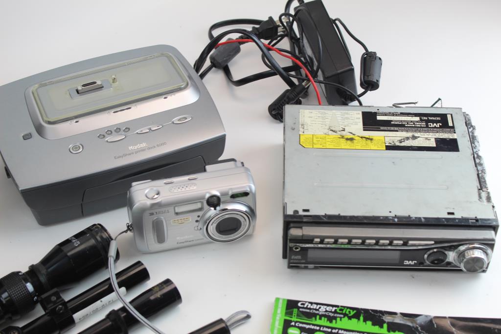 Get a great deal with this online auction presented by PropertyRoom.com on behalf of a law enforcement or public agency client. - Brand: Bazooka Bass Tubes, Daisy Scope, Tasco Scope, JVC Car stereo, 59 Fifty Men's Hats, The league of nightlife heroes armani the king of VIP Action figures, Belkin iPad Air Keyboard Case, Black Case(2), Kodak Easyshare Printer dock 6000, AC Adapter, Kodak EasyShare DX6340