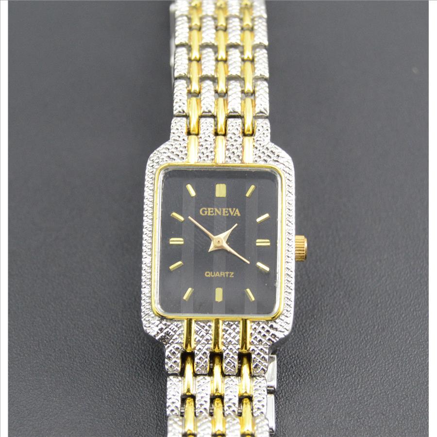 Geneva Gold Plated Stainless Textured Hinged Link Rectangular 19.9x16.4mm Face Vintage Unisex Wrist Watch