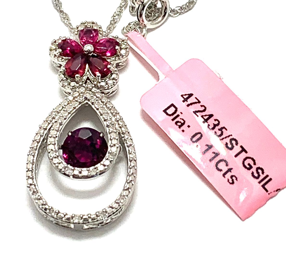 Genuine Diamond & Rhodolite, 925 Sterling Silver & 18k Gold Ovr Necklace