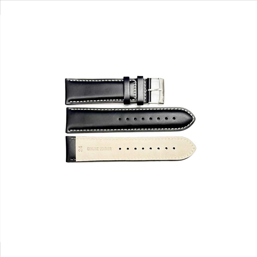 • Watch Strap Material: Soft genuine leather, (Black  Color) with white stitches.