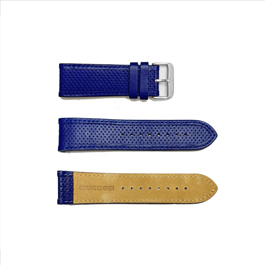 GENUINE LEATHER STRAP (25mm)- PUNCTURE TEXTURE ROYAL BLUE COLOR, SILVERTONE
