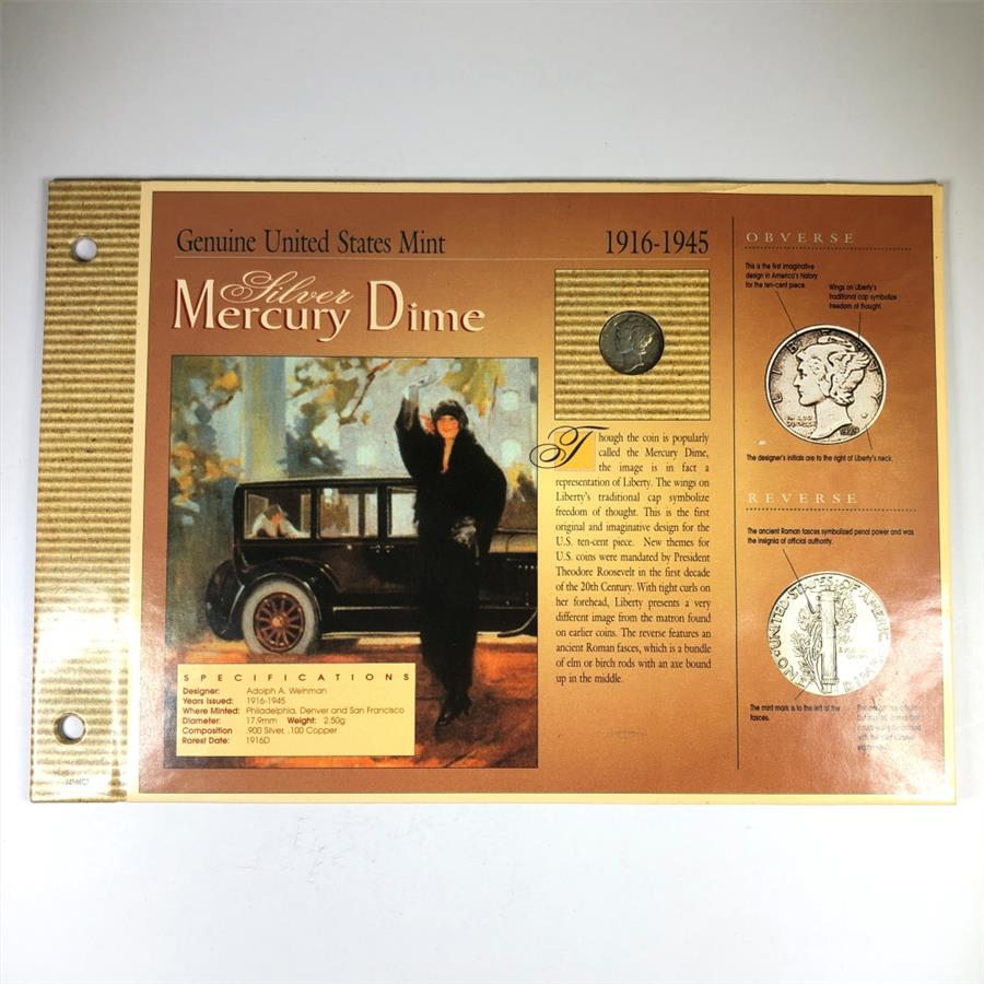 Genuine United States Mint Display Board featuring Silver Mercury Dime