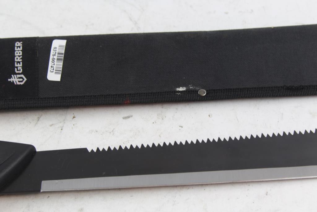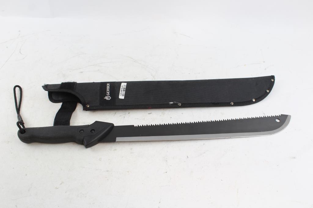 Get a great deal with this online auction for a machete presented by Property Room on behalf of a law enforcement or public agency client. - Gerber Back Serrated Machete And Sheath