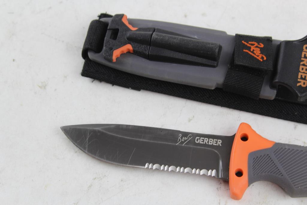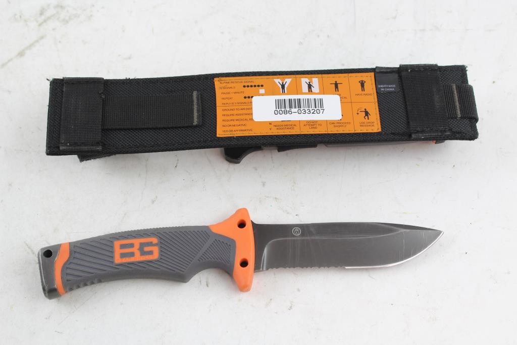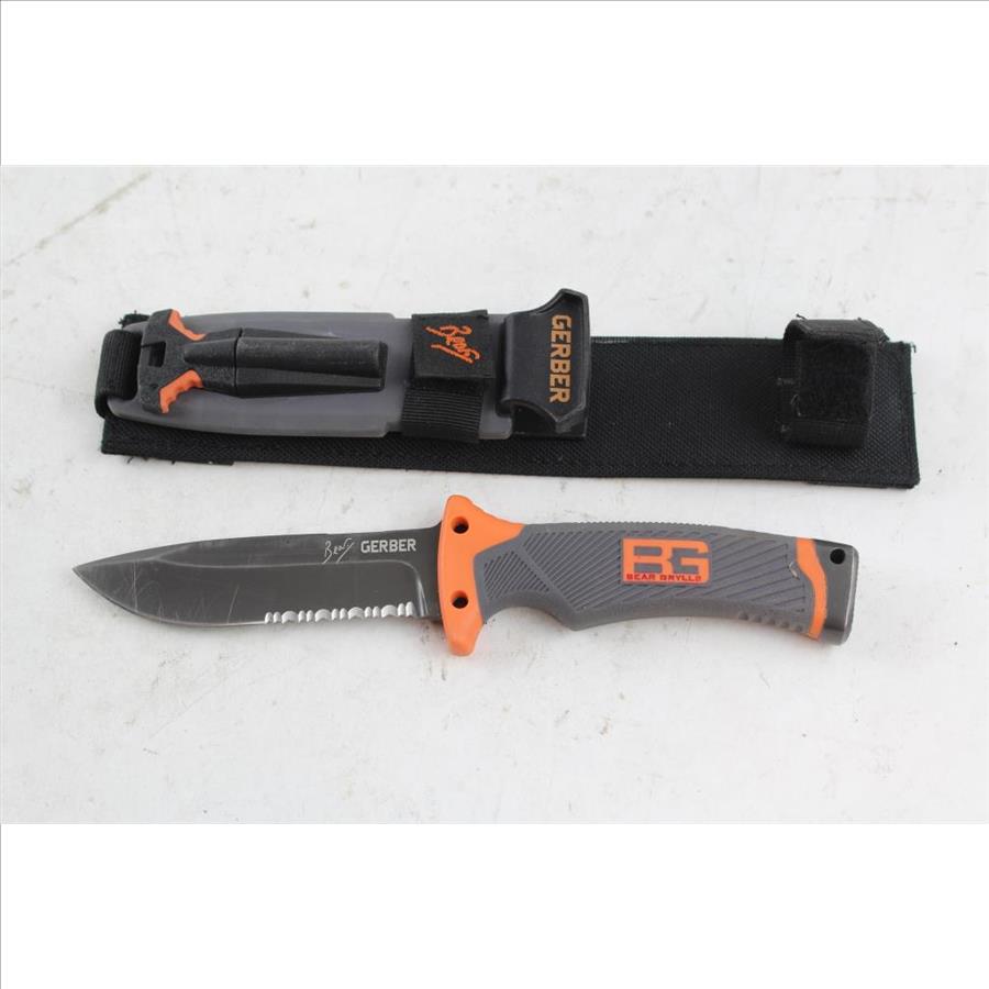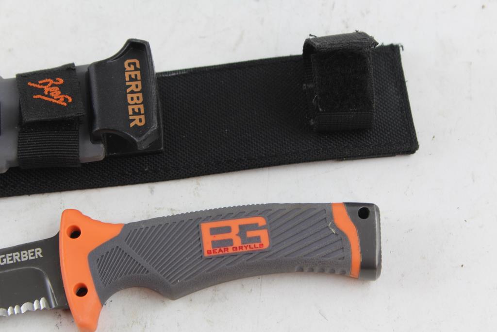 Get a great deal with this online auction for a knife presented by Property Room on behalf of a law enforcement or public agency client. - Brand/Model: Gerber Bear Grylls Fixed Blade Knife And Sheath