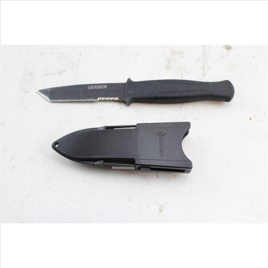 Get a great deal with this online auction for a Gerber fixed blade knife with sheath presented by Property Room on behalf of a law enforcement or public agency client. - Brand: Gerber