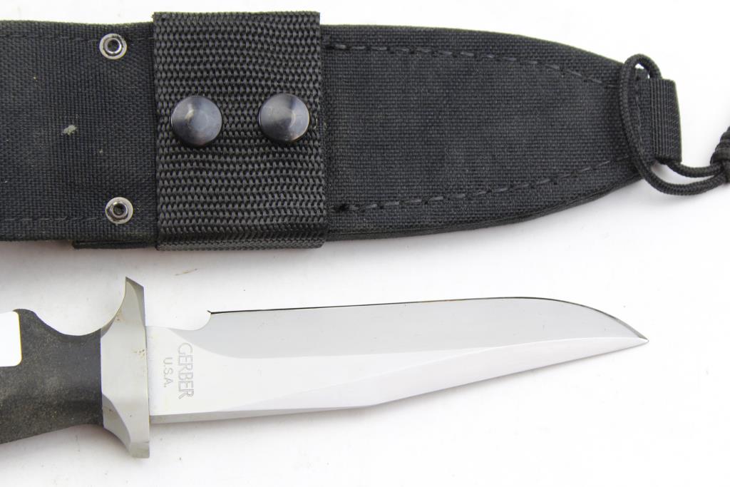 Get a great deal with this online auction for a knife presented by Property Room on behalf of a law enforcement or public agency client. - Brand/Model: Gerber LMF 052383 Fixed Blade Knife And Sheath