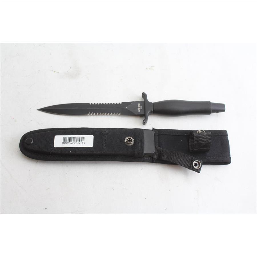 Get a great deal with this online auction for a knife presented by Property Room on behalf of a law enforcement or public agency client. - Brand/Model:Gerber Mark II Fixed Blade Knife And Sheath
