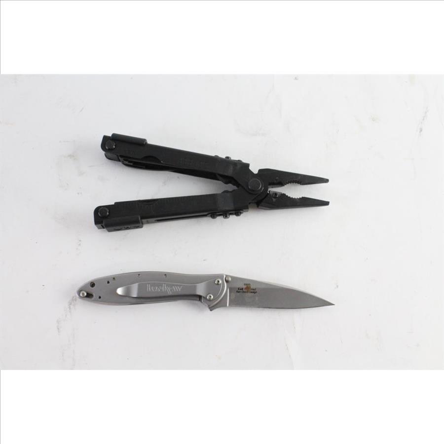 Get a great deal with this online auction for a multitool and knife presented by Property Room on behalf of a law enforcement or public agency client. - Gerber multitool, black, with slide out pliers