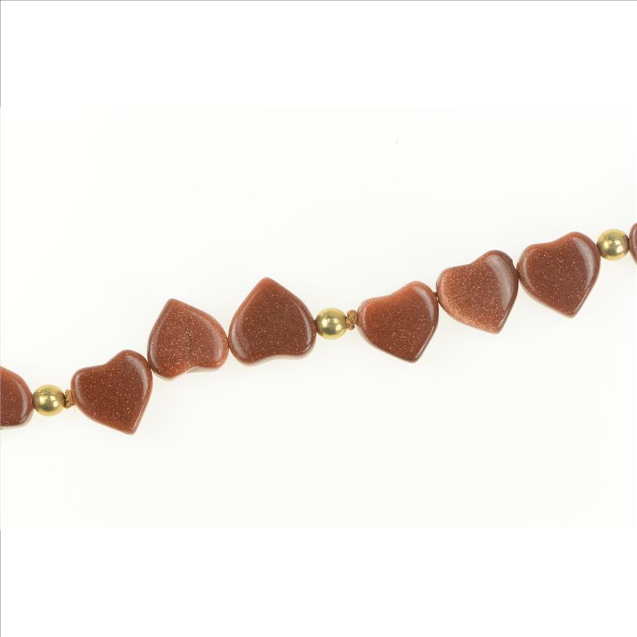 Item:  Gold Filled Carved Goldstone Heart Retro Chain Bracelet 7"