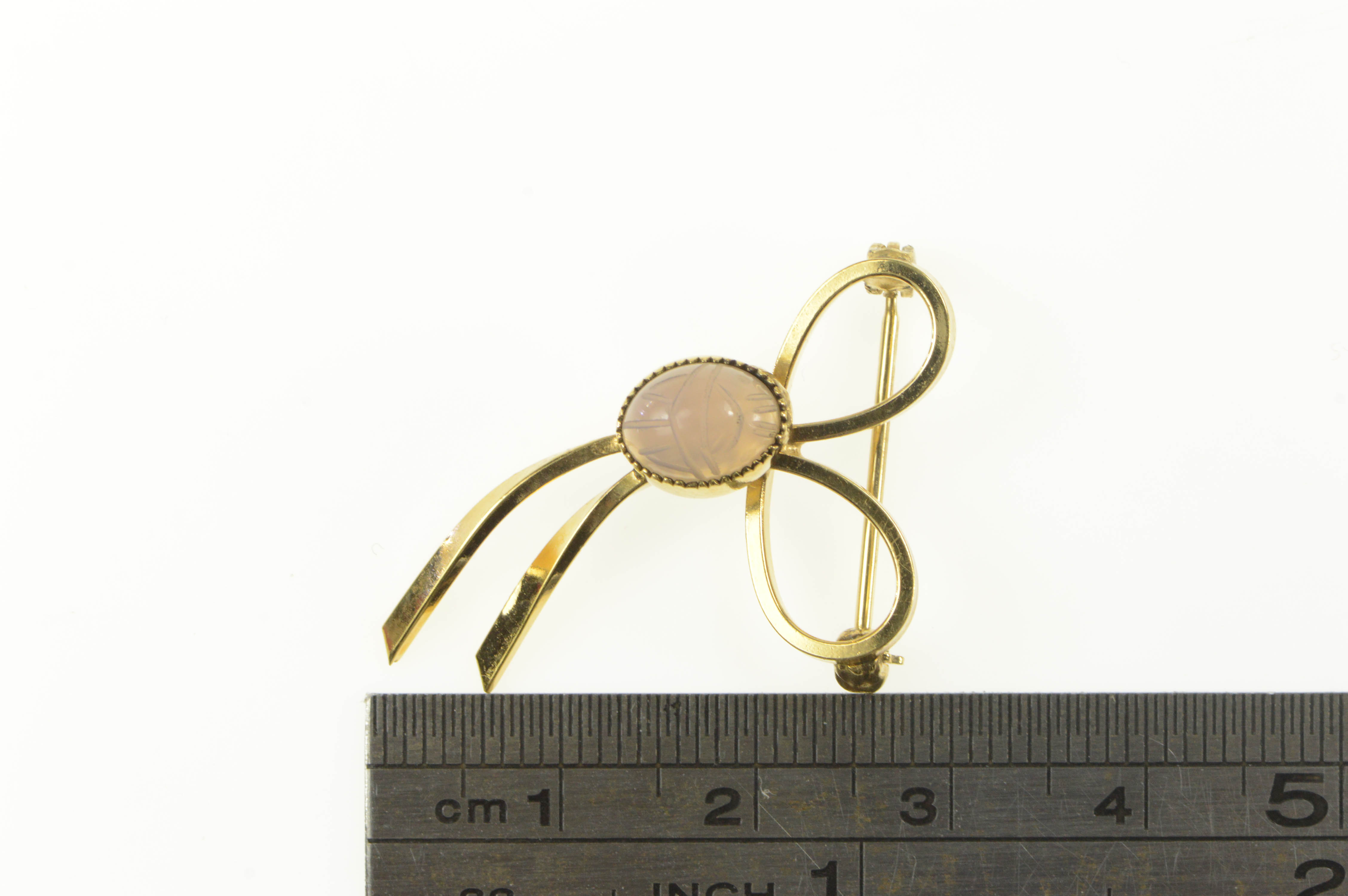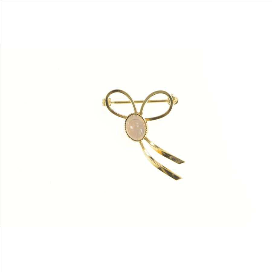 Item:  Gold Filled Moonstone Carved Egyptian Scarab Bow Pin/Brooch