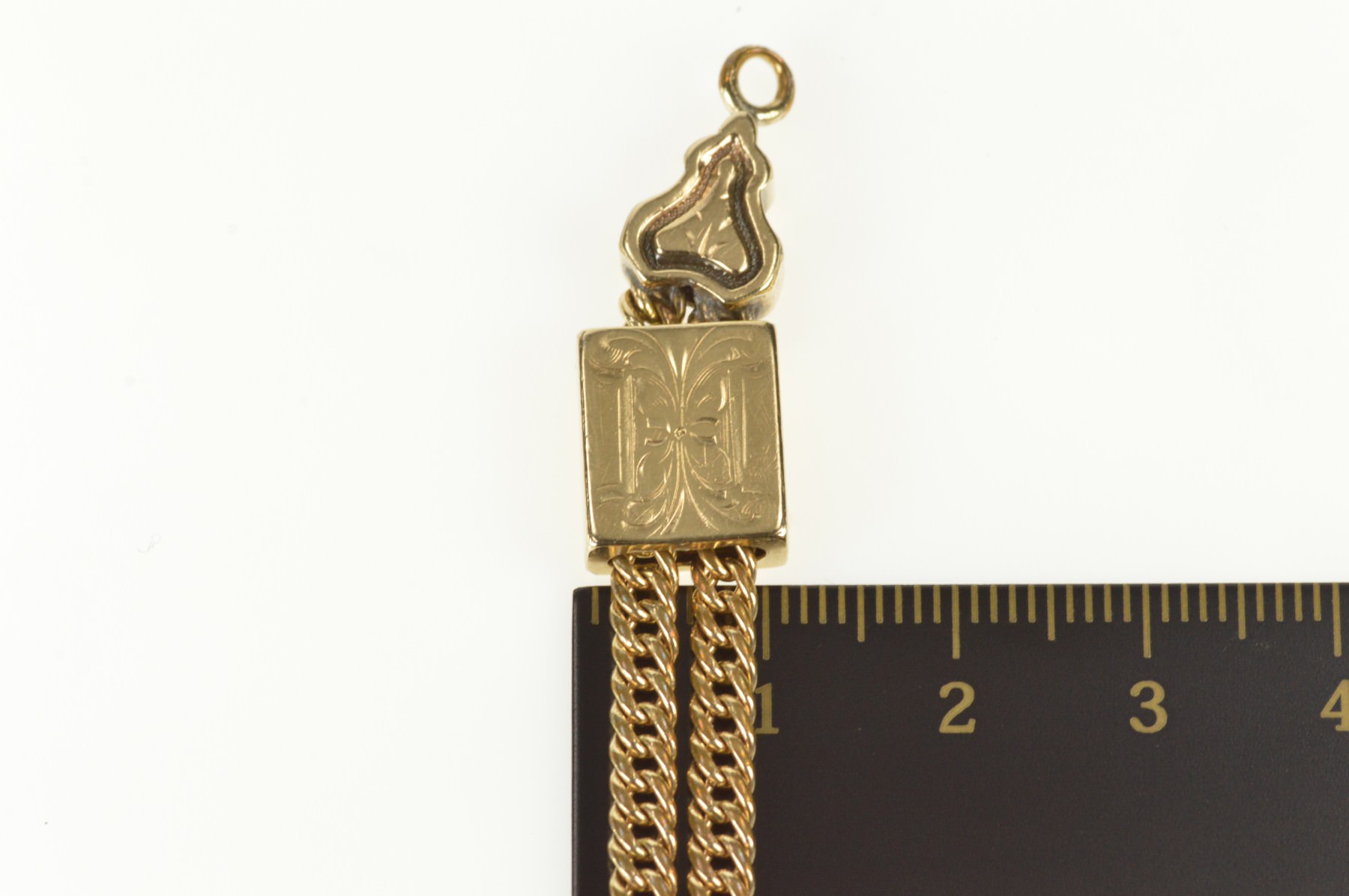 Notes:  This etched portions decorating this gold filled chain are tested 10K gold