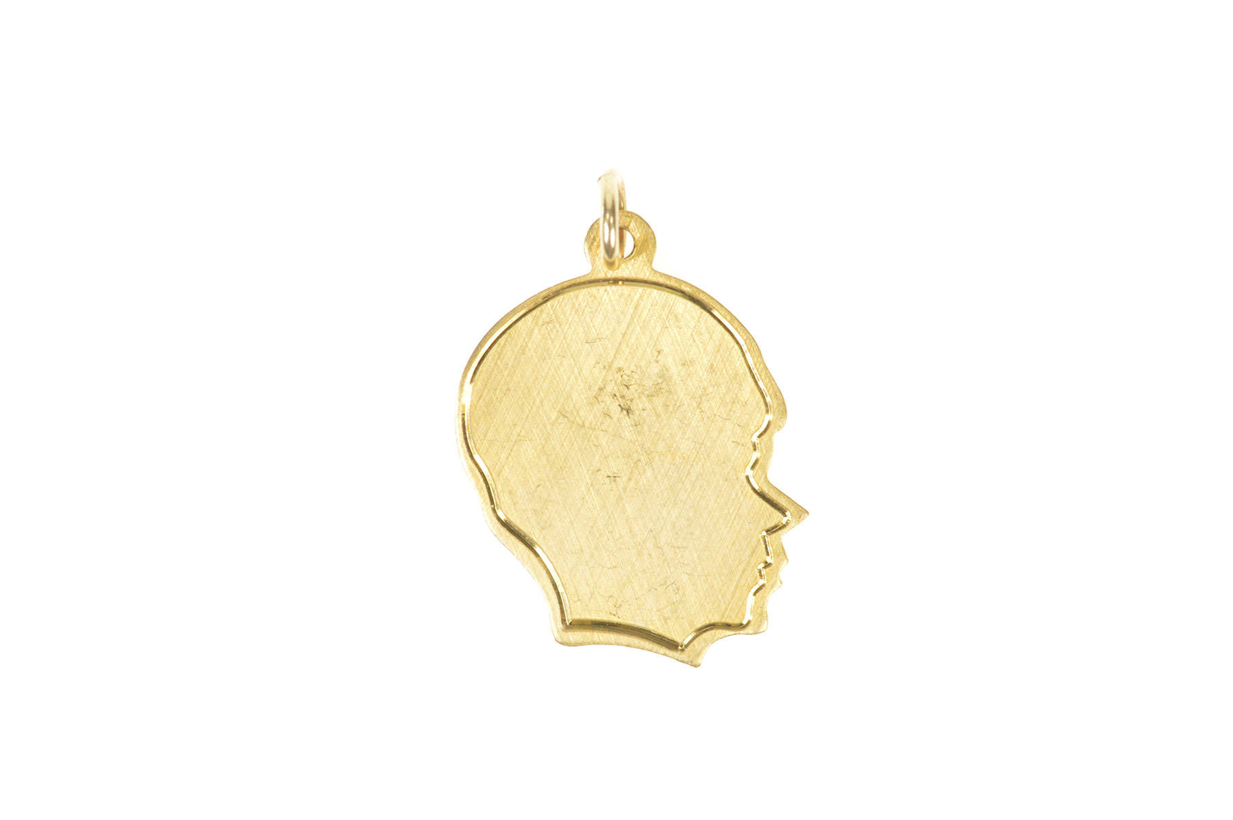 Gold Filled Retro Crosshatch Boy Profile Engravable Face Charm/Pendant