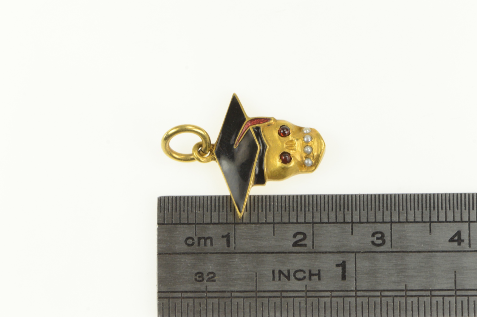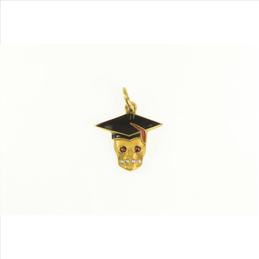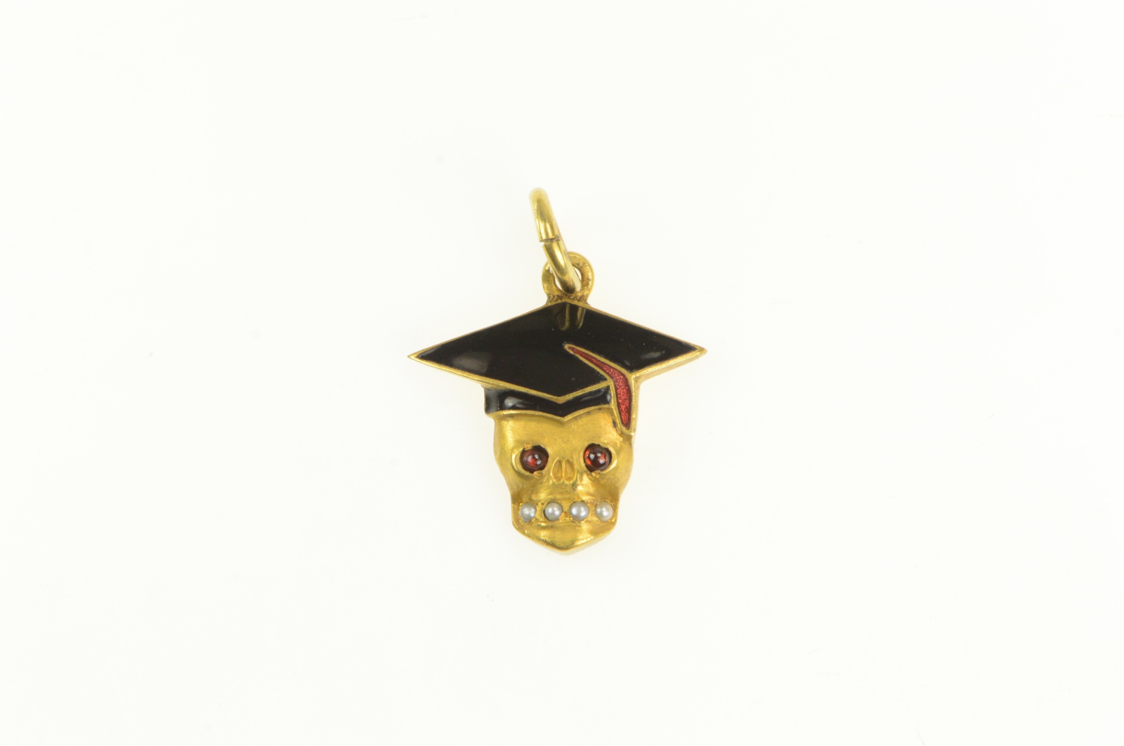 Gold Filled Victorian Enamel Skull Graduation Cap Scholar Charm/Pendant